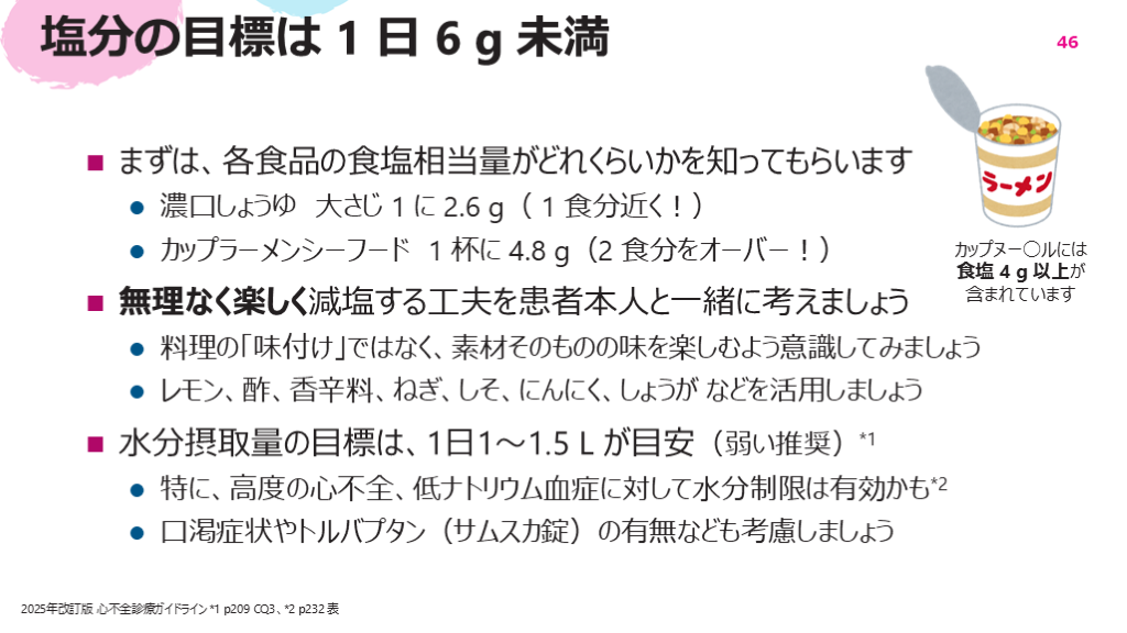 特に、高度の心不全、低ナトリウム血症に対して水分制限は有効かも*2