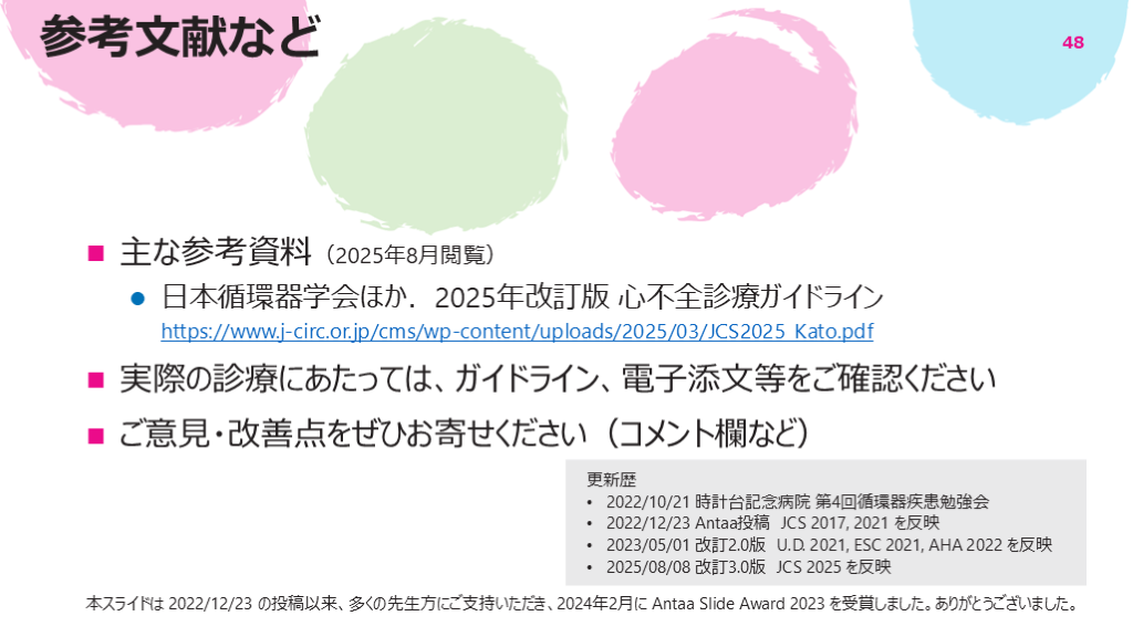 日本循環器学会ほか.2025年改訂版 心不全診療ガイドラインhttps://www.j-circ.or.jp/cms/wp-content/uploads/2025/03/JCS2025_Kato.pdf