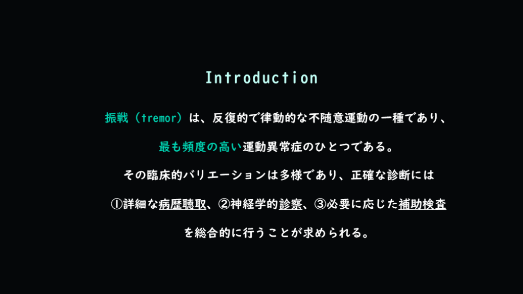 #3. Introduction 振戦(tremor)は、反復的で律動的な不随意運動の一種であり、