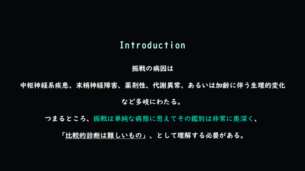 つまるところ、振戦は単純な病態に思えてその鑑別は非常に奥深く、
