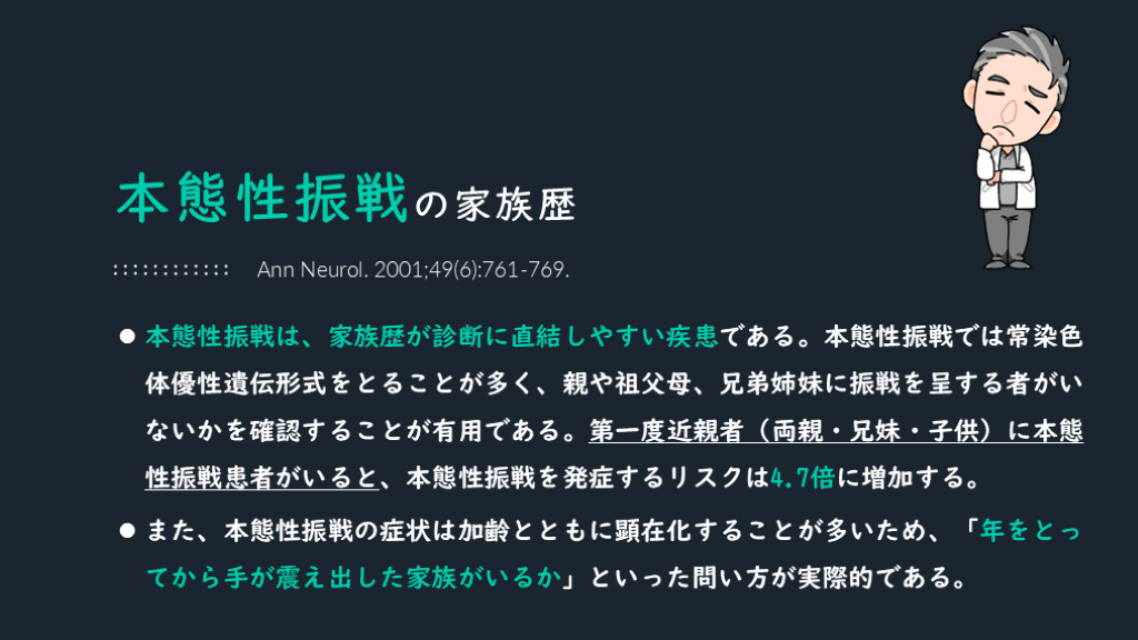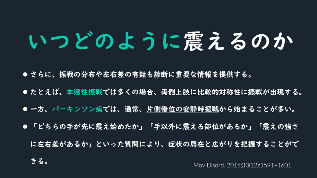 #29. 既往歴確認の大切さ 振戦の診断において、既往歴の聴取は極めて重要である。