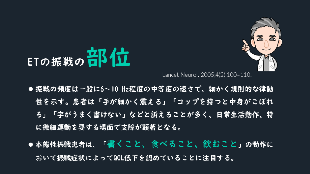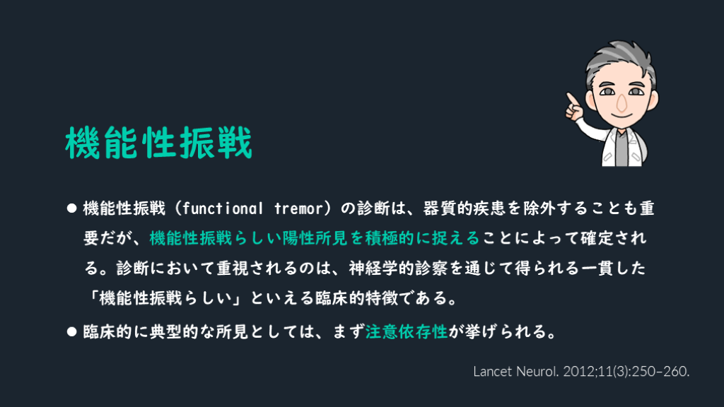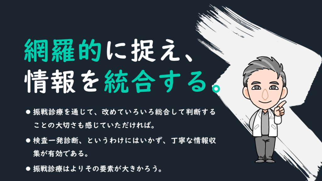 振戦診療はよりその要素が大きかろう。 網羅的に捉え、