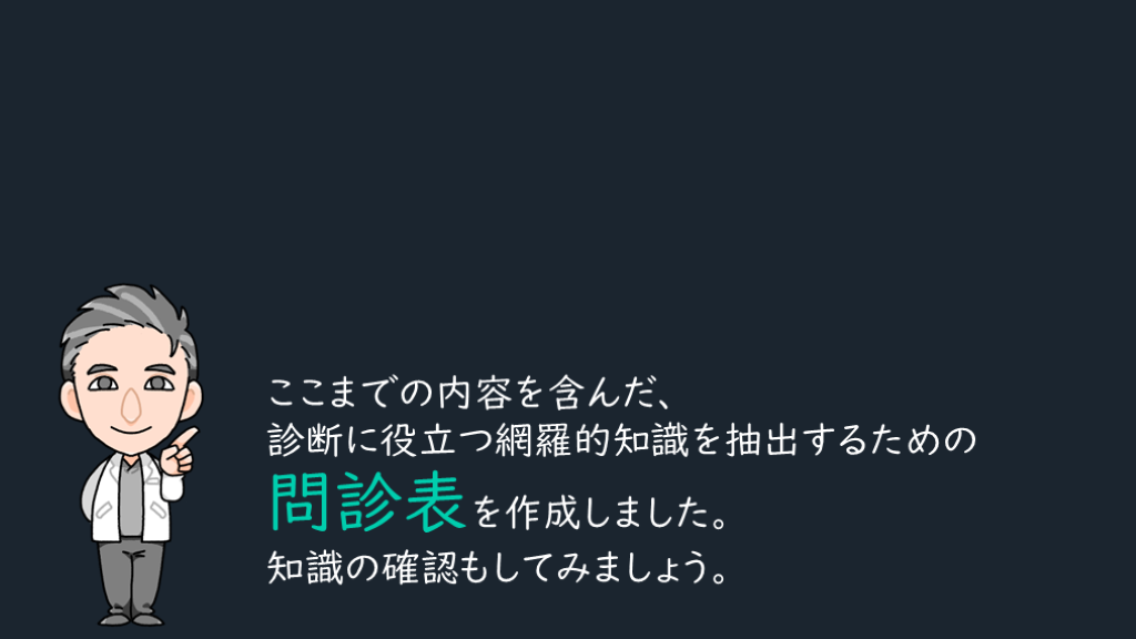 ①診断は? ②追加問診は? ③今後のアクションは? 61歳男性。