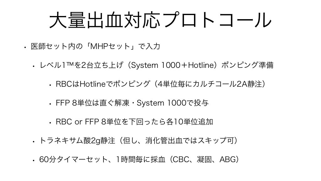 大量出血対応プロトコールの詳細
