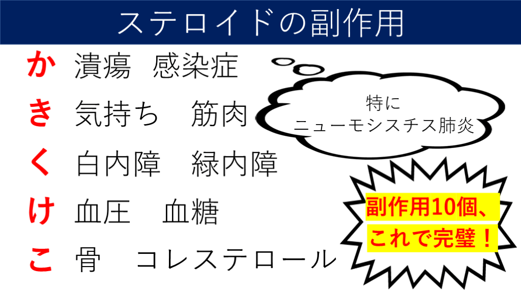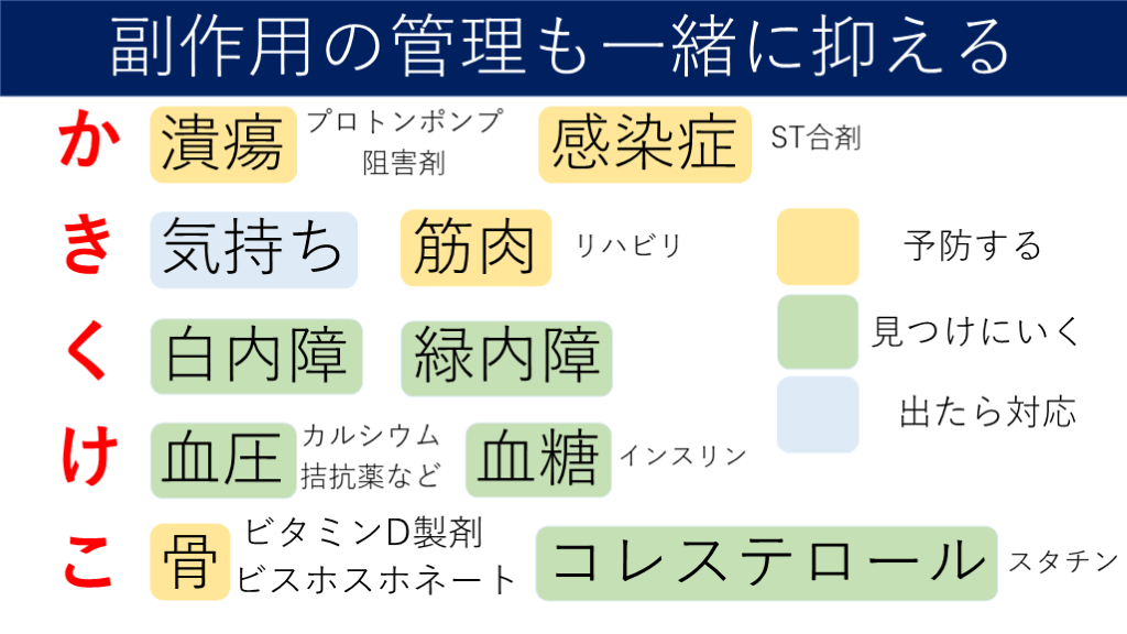 ステロイドの副作用とマネジメントの覚え方についての解説です。