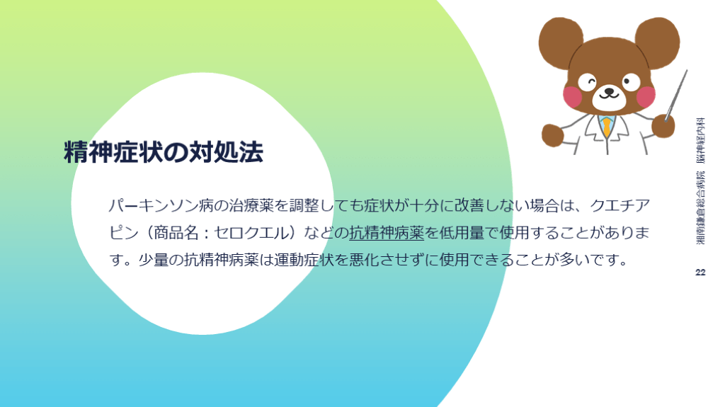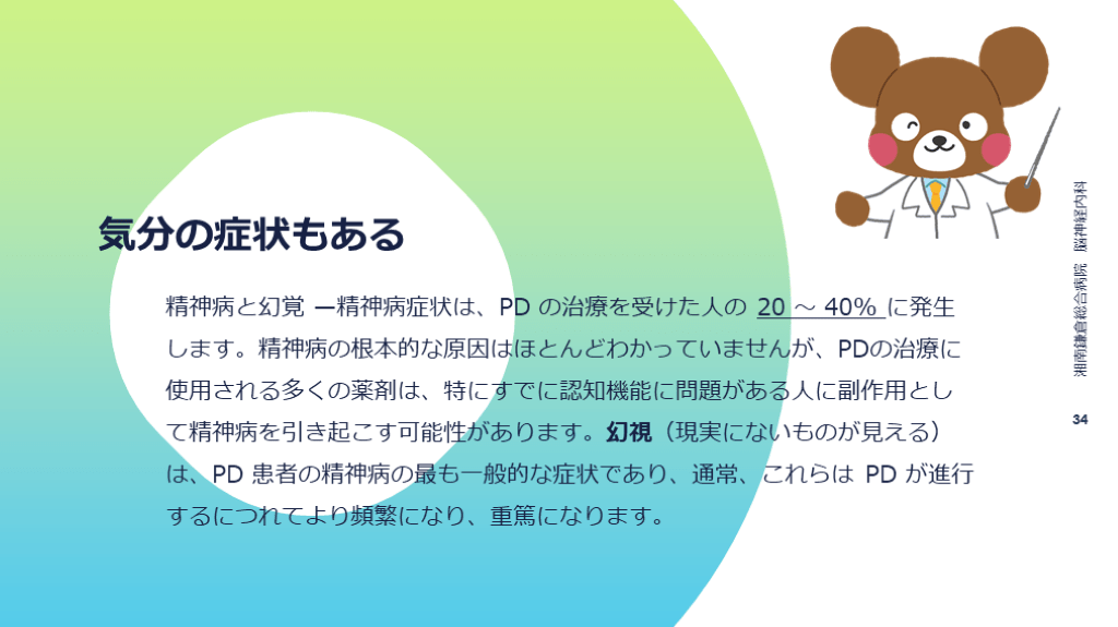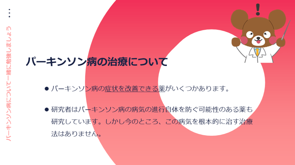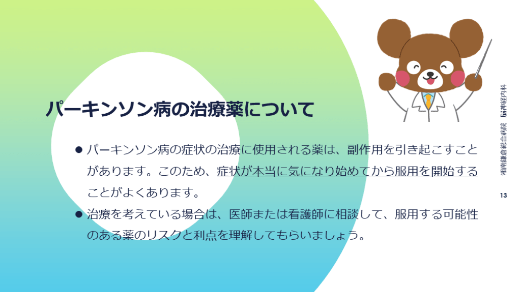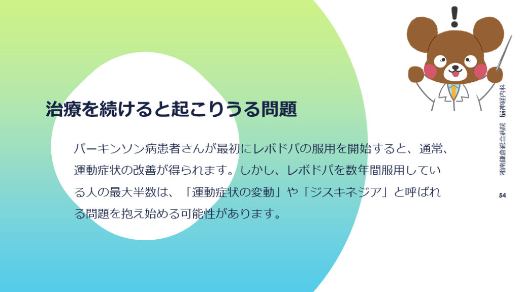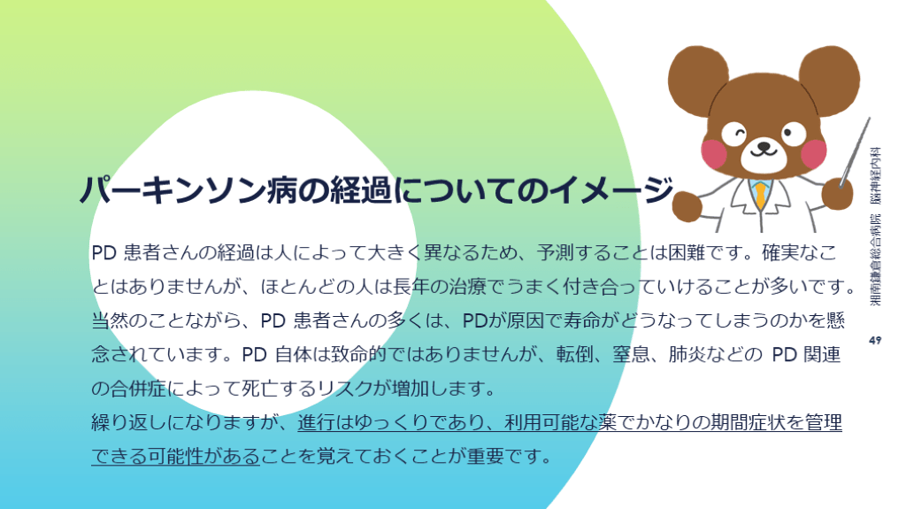 繰り返しになりますが、進行はゆっくりであり、利用可能な薬でかなりの期間症状を管理できる可能性があることを覚えておくことが重要です。