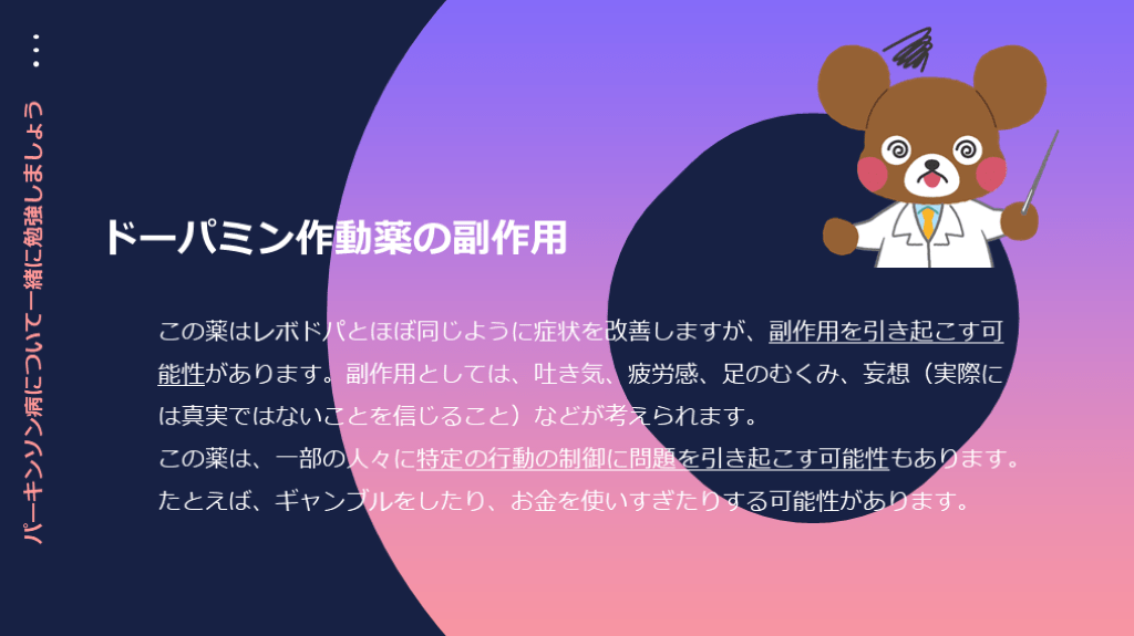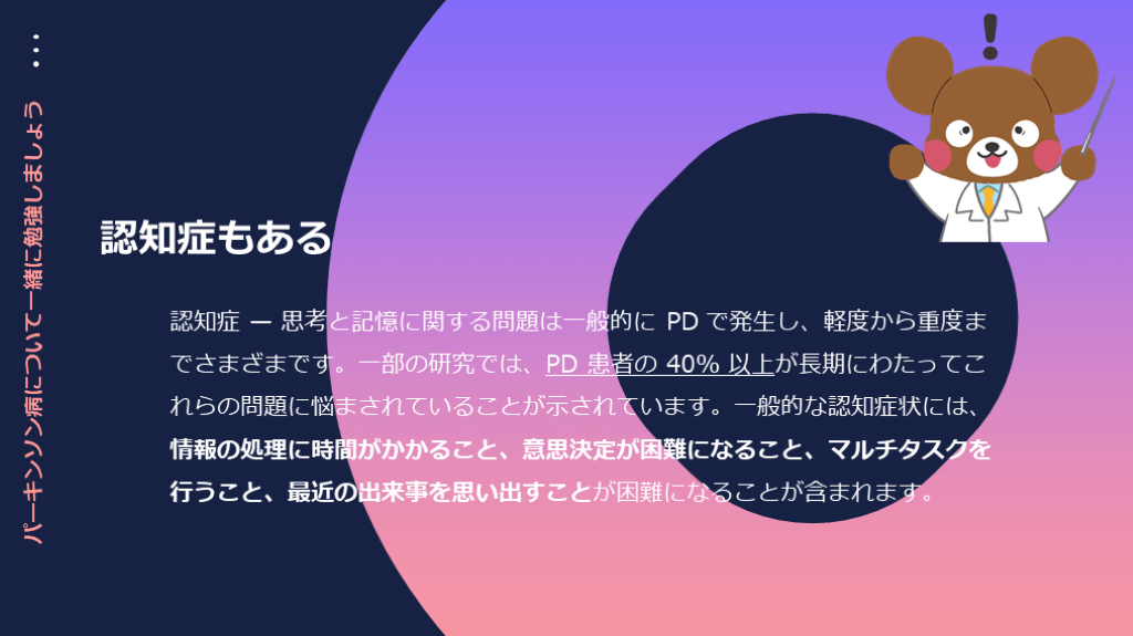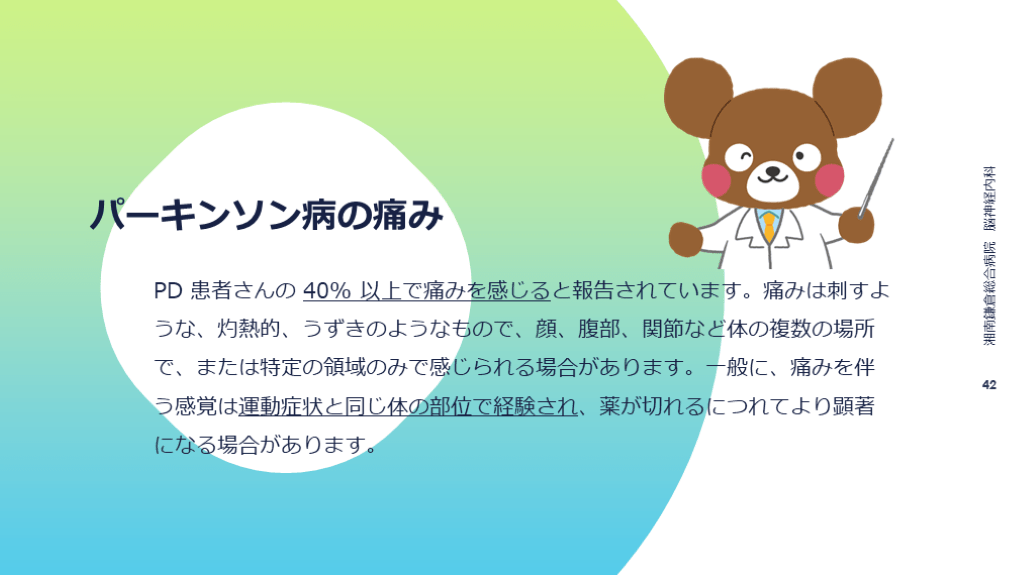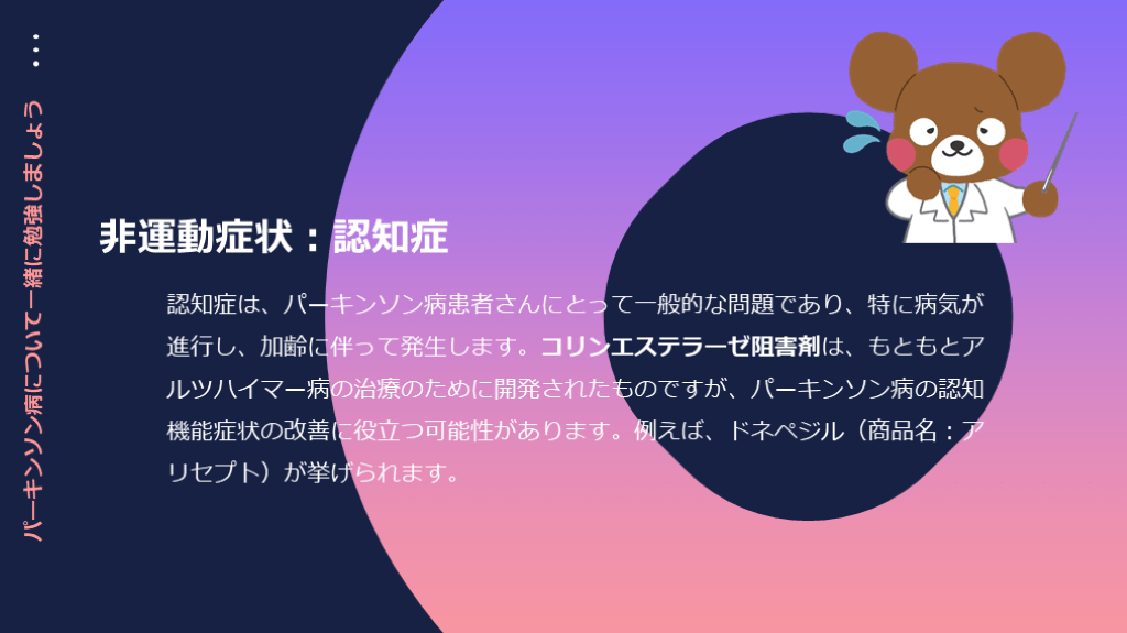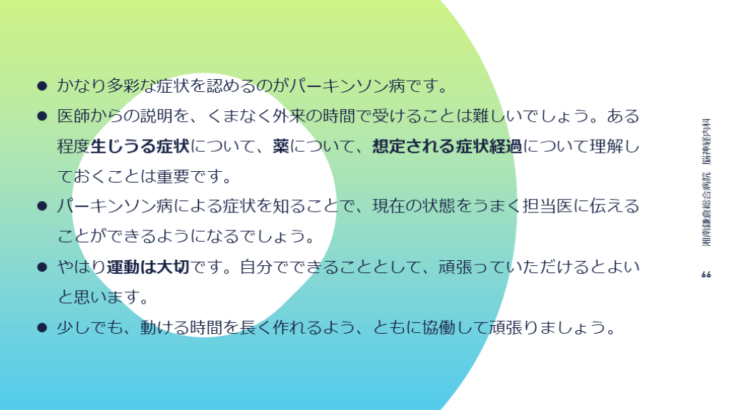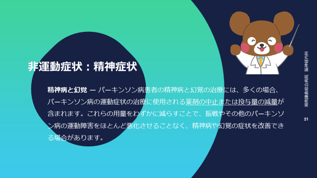 繰り返しになりますが、進行はゆっくりであり、利用可能な薬でかなりの期間症状を管理できる可能性があることを覚えておくことが重要です。
