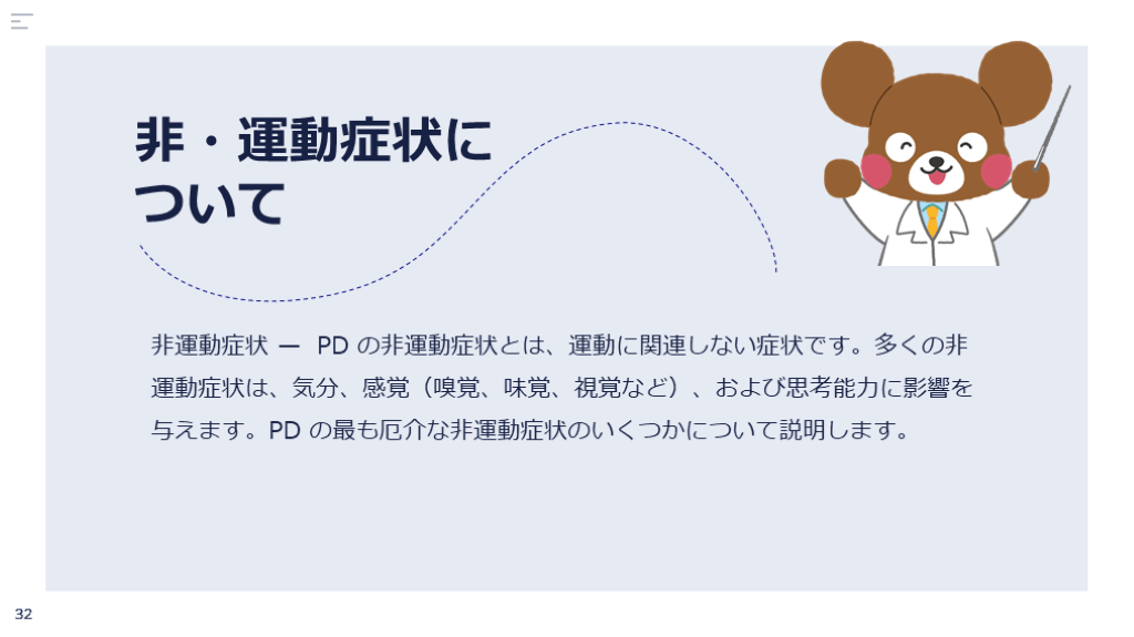 ついて 非運動症状 — PD の非運動症状とは、運動に関連しない症状です。多くの非運動症状は、気分、感覚(嗅覚、味覚、視覚など)、および思考能力に影響を与えます。PD の最も厄介な非運動症状のいくつかについて説明します。