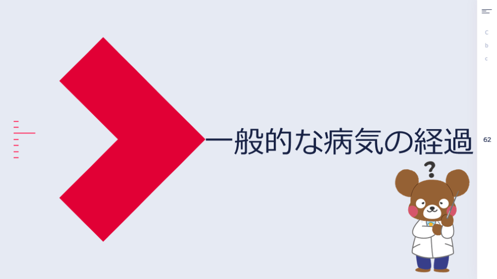 #63. 病気がもつ経過 いずれの病気でも、想定される症状経過があります。