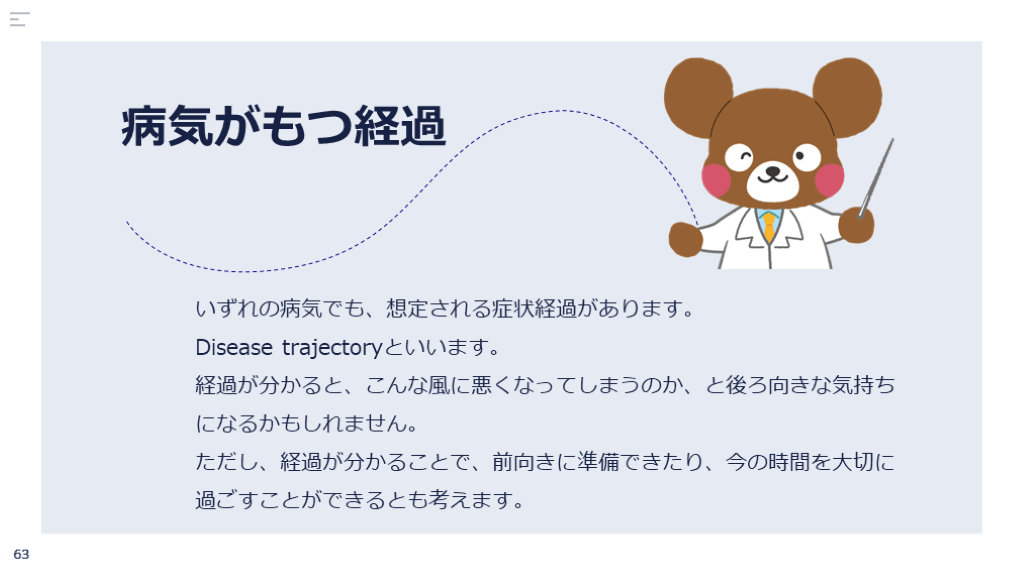 ただし、経過が分かることで、前向きに準備できたり、今の時間を大切に過ごすことができるとも考えます。