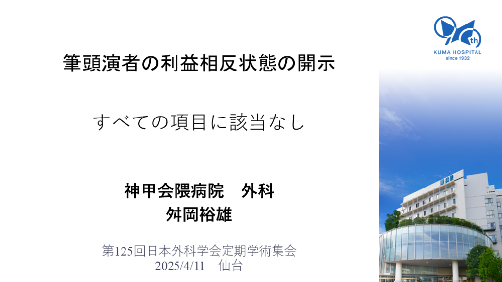 2025/4/11 仙台 筆頭演者の利益相反状態の開示 すべての項目に該当なし 神甲会隈病院 外科