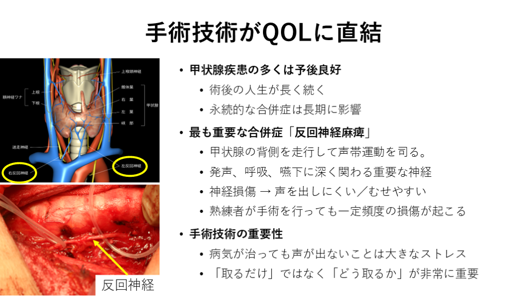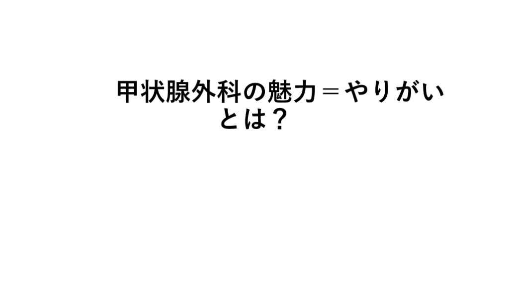 #1. 甲状腺外科学の可能性生活の質を向上させる外科医の使命とやりがい -若い世代へのメッセージ- 神甲会隈病院 外科