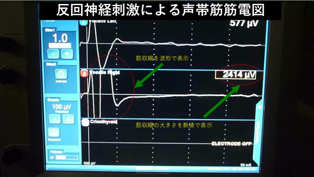 #7. 筋収縮を波形で表示 筋収縮の大きさを数値で表示 反回神経刺激による声帯筋筋電図