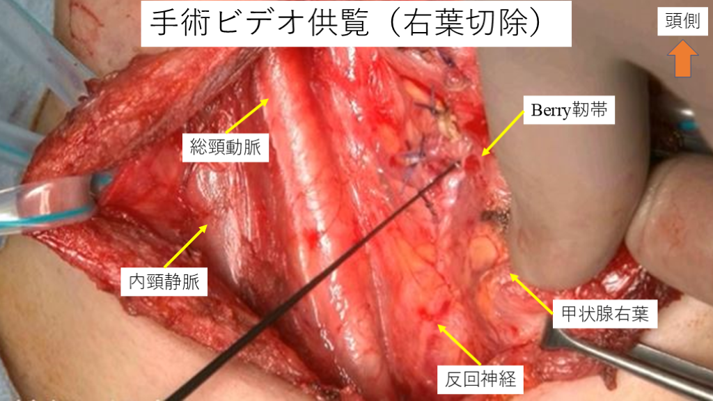 #8. 反回神経 甲状腺右葉 総頸動脈 内頸静脈 Berry靭帯 頭側 手術ビデオ供覧(右葉切除)