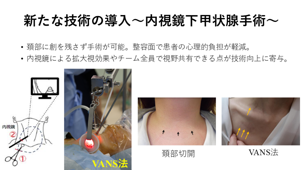 #11. 新たな技術の導入~内視鏡下甲状腺手術~ 頚部に創を残さず手術が可能。整容面で患者の心理的負担が軽減。