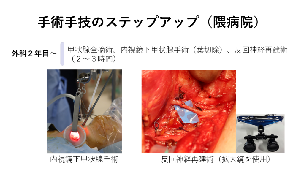 (2~3時間) 外科2年目~ 内視鏡下甲状腺手術 反回神経再建術(拡大鏡を使用)