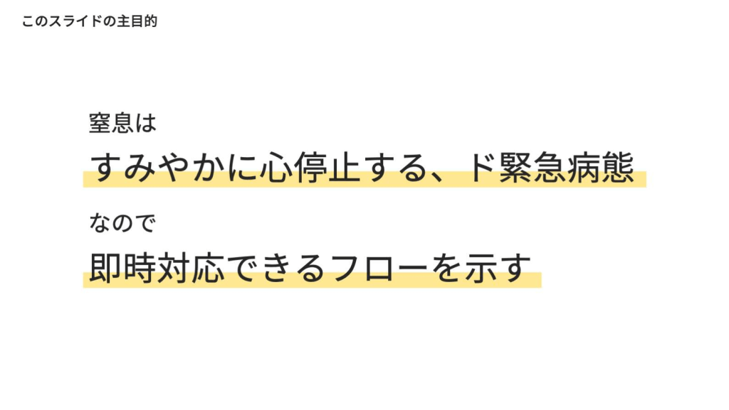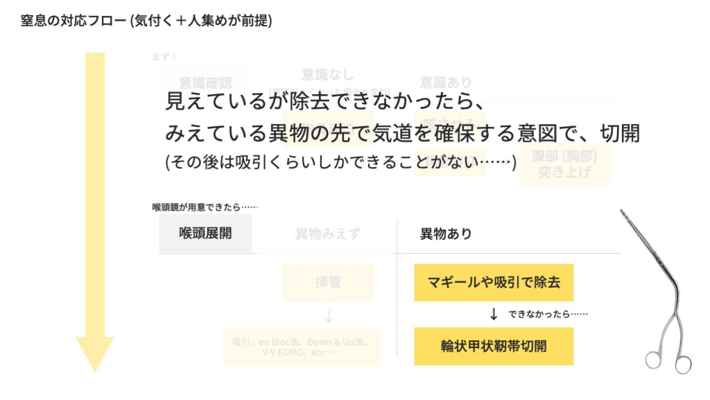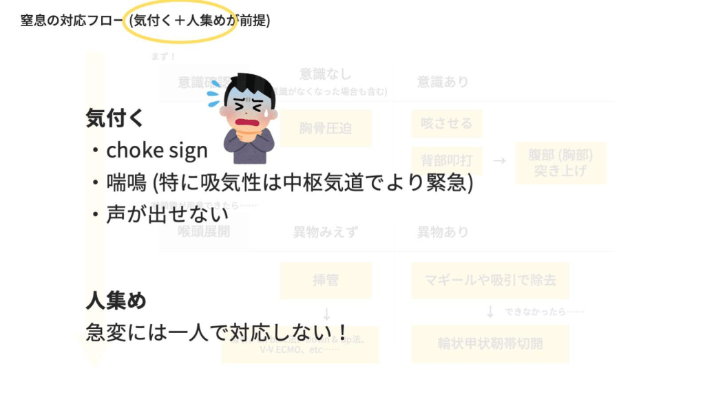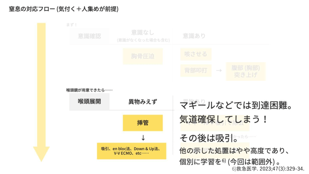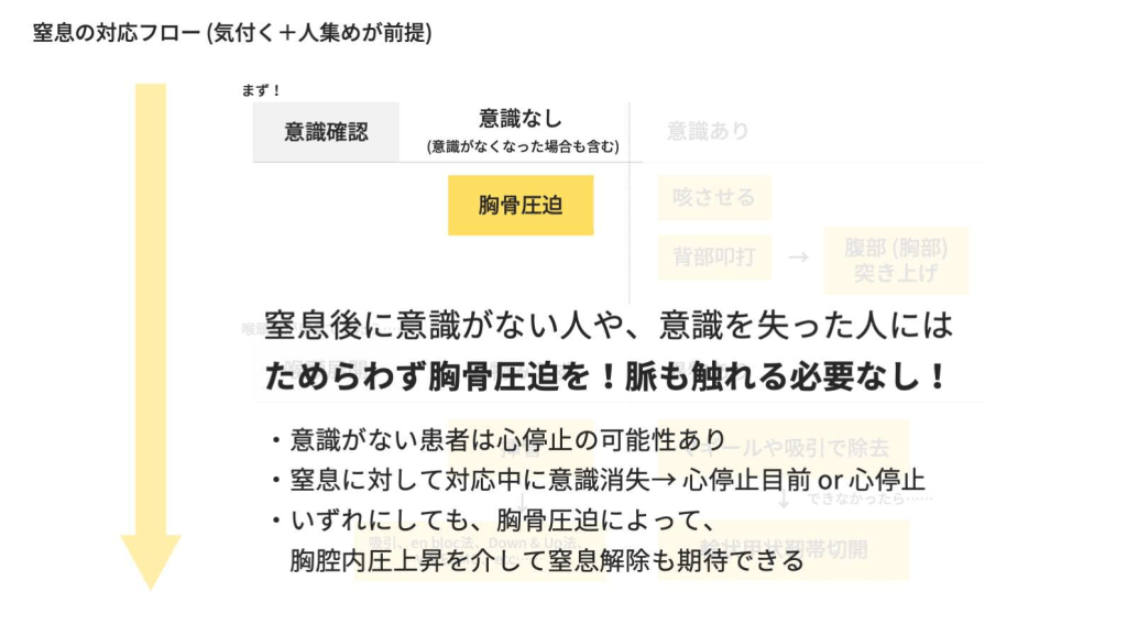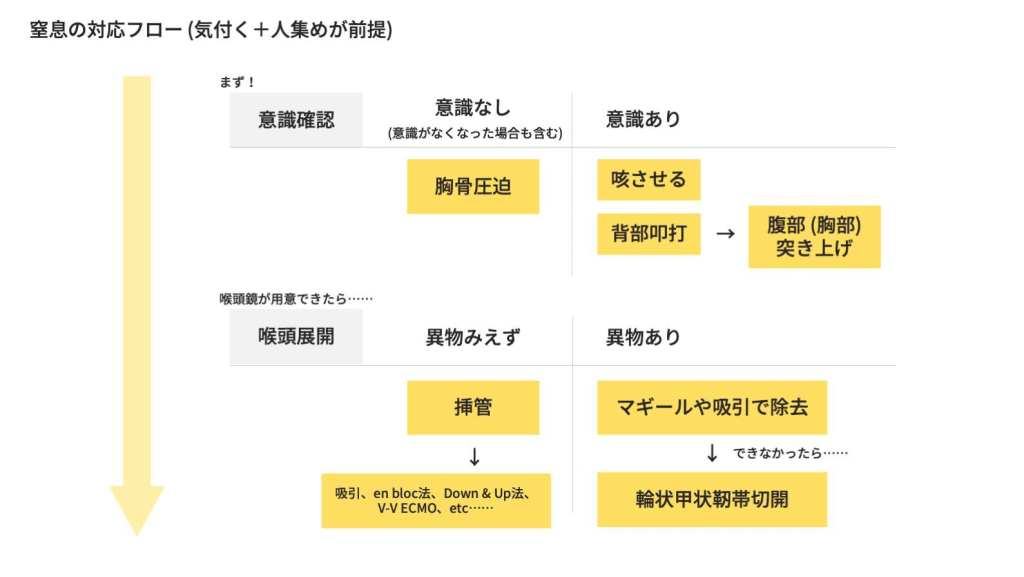 すみやかに心停止に移行する、窒息に対する即時の対応をフローにまとめました。
