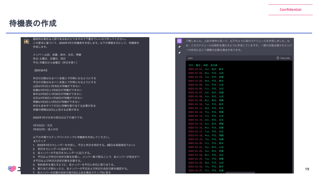 Confidential 待機表の作成 19 AIを用いた診断支援と研究の可能性 #20.