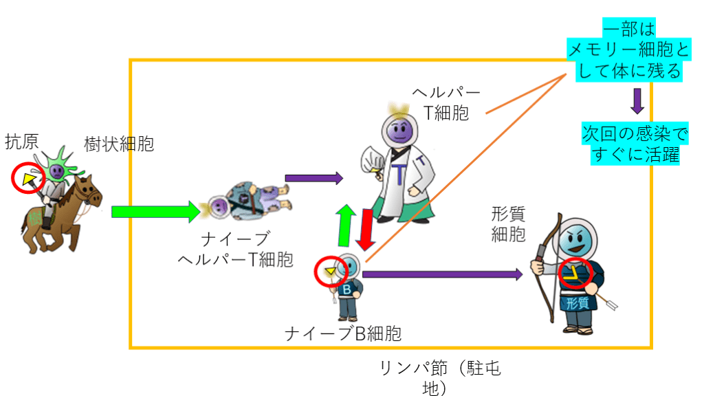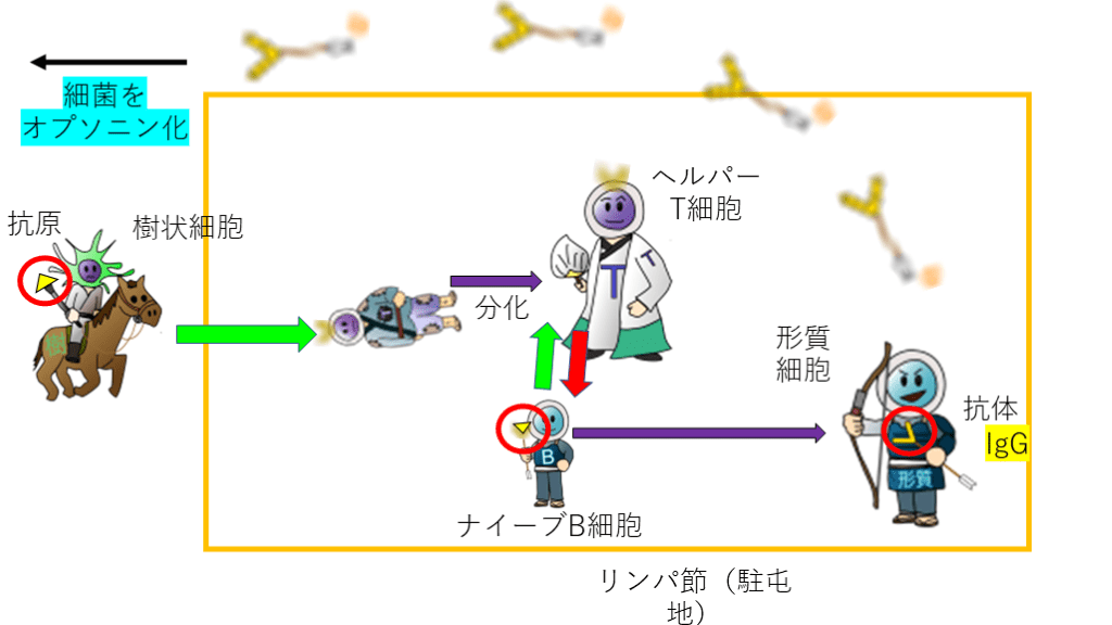 ②ナイーブB細胞を活性化して、形質細胞に分化させるというもう一つの重要な役割があります