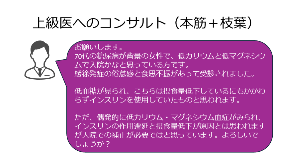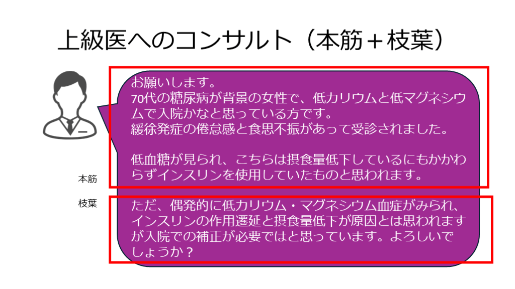 #22. 上級医へのコンサルト(本筋+枝葉) お願いします。