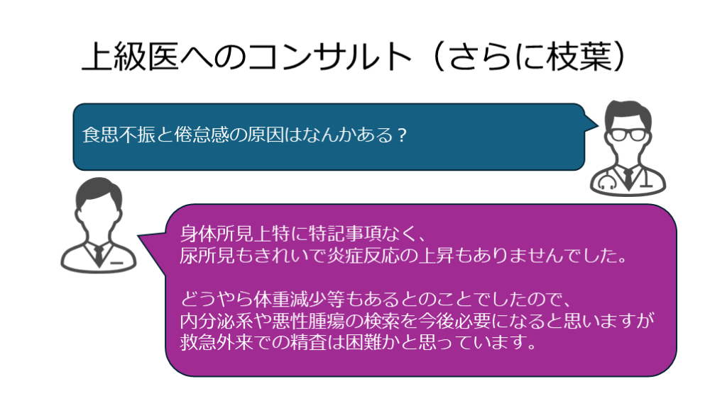 #23. 上級医へのコンサルト(さらに枝葉) 身体所見上特に特記事項なく、