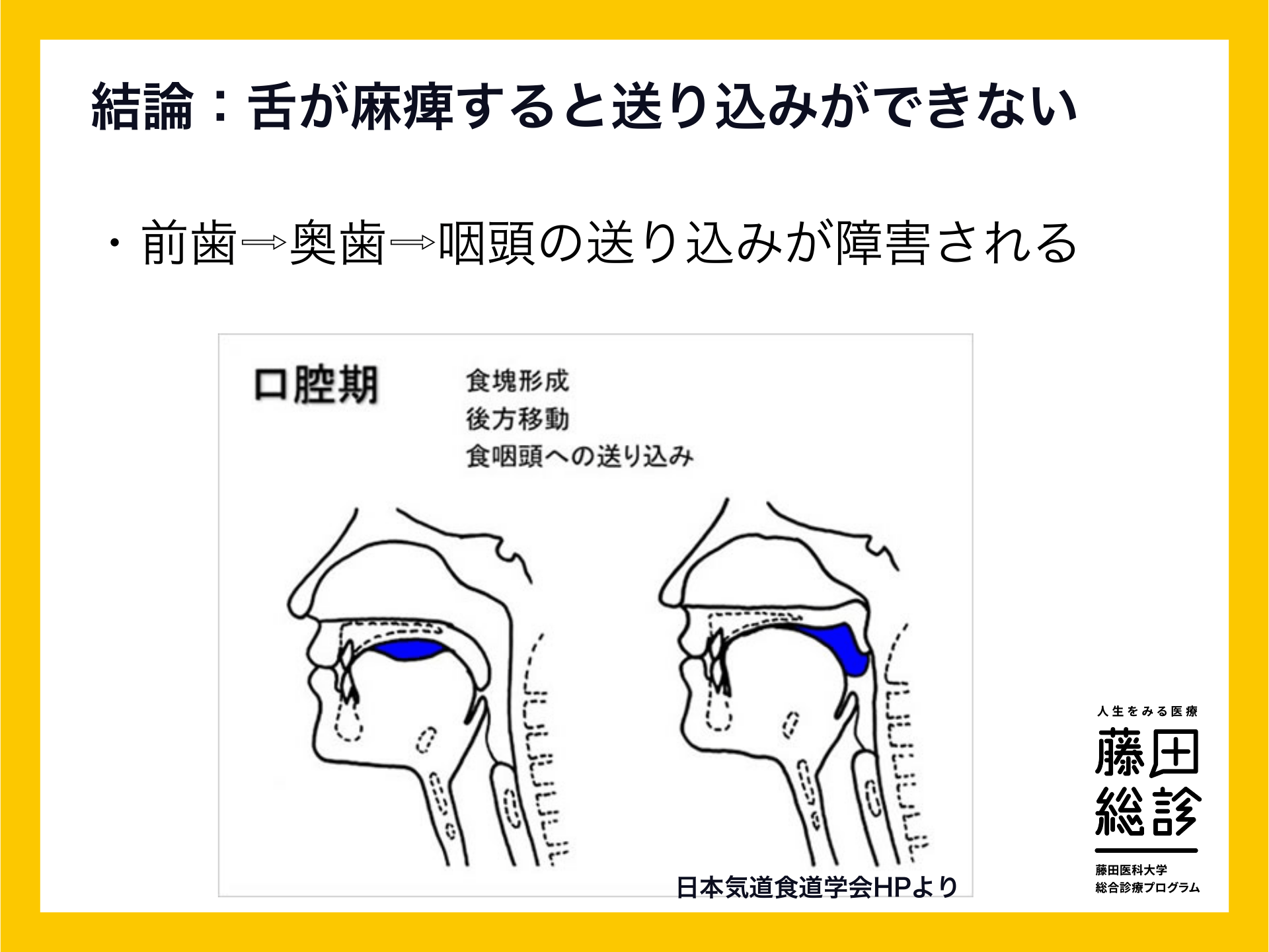 #36. 結論:舌が麻痺すると送り込みができない ・前歯⇨奥歯⇨咽頭の送り込みが障害される 日本気道食道学会HPより Copyright FUJITA SOUSHIN PROGAM All Right Reserved.