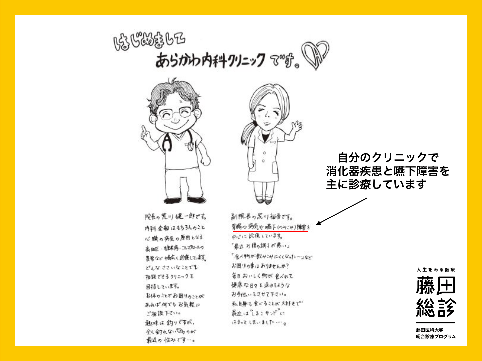 #4. 自分のクリニックで 消化器疾患と嚥下障害を 主に診療しています Copyright FUJITA SOUSHIN PROGAM All Right Reserved.