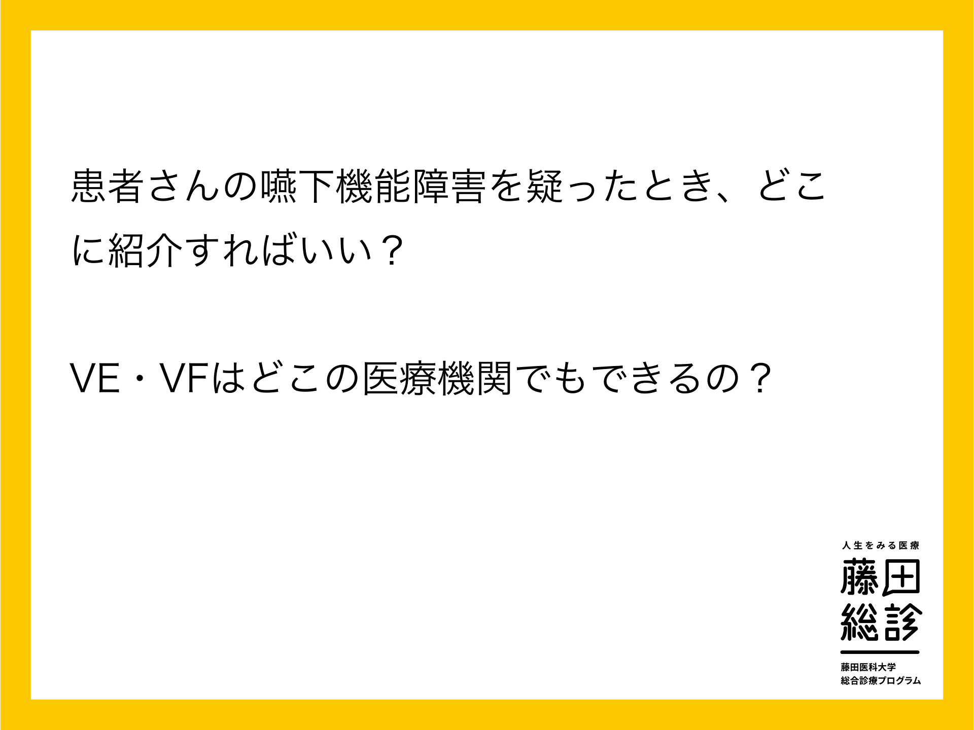 #47. 患者さんの嚥下機能障害を疑ったとき、どこ に紹介すればいい? VE・VFはどこの医療機関でもできるの? Copyright FUJITA SOUSHIN PROGAM All Right Reserved.