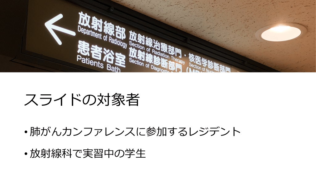 #2. スライドの対象者 • 肺がんカンファレンスに参加するレジデント • 放射線科で実習中の学⽣