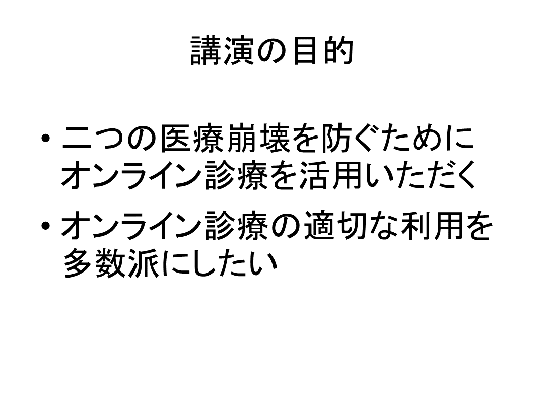 #2. 講演の目的 二つの医療崩壊を防ぐためにオンライン診療を活用いただく