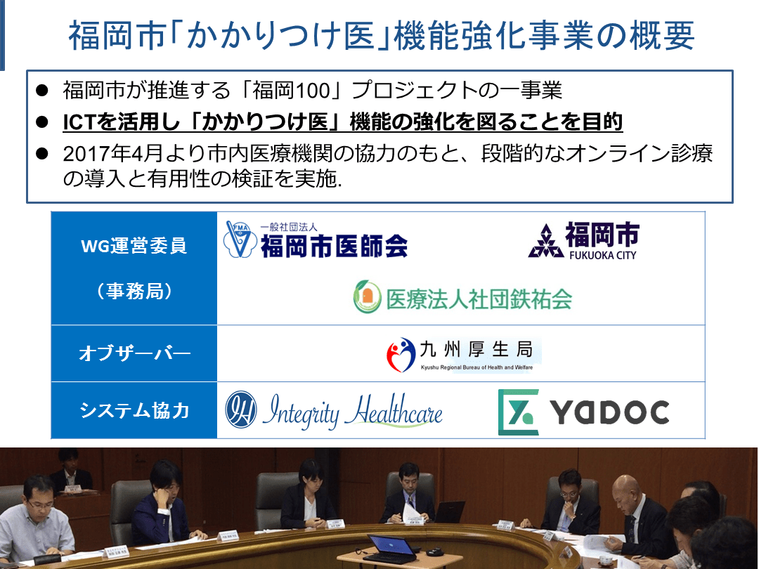 2017年4月より市内医療機関の協力のもと、段階的なオンライン診療の導入と有用性の検証を実施.