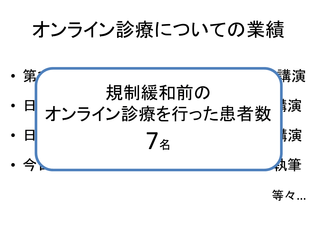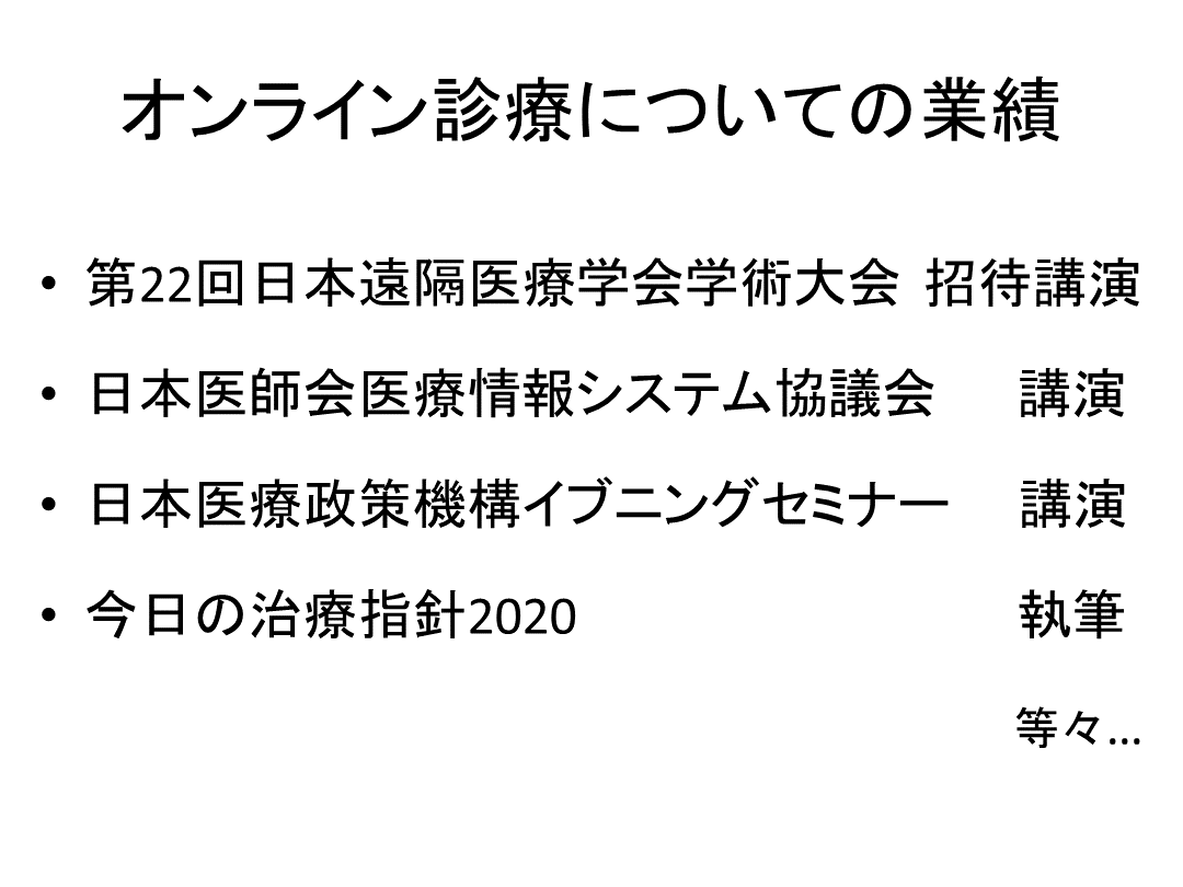 #7. オンライン診療についての業績 第22回日本遠隔医療学会学術大会 招待講演