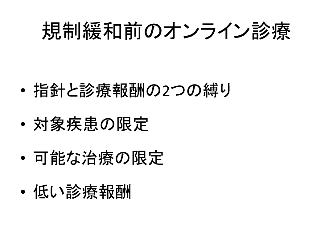 #9. 規制緩和前のオンライン診療 指針と診療報酬の2つの縛り