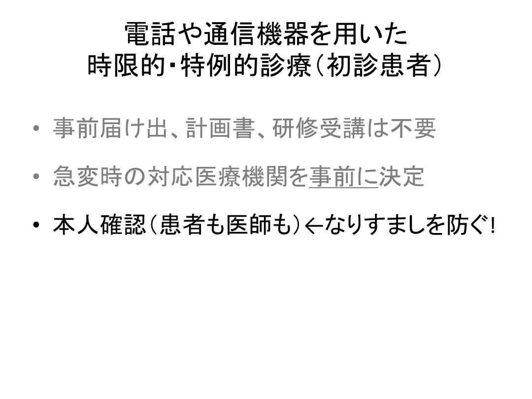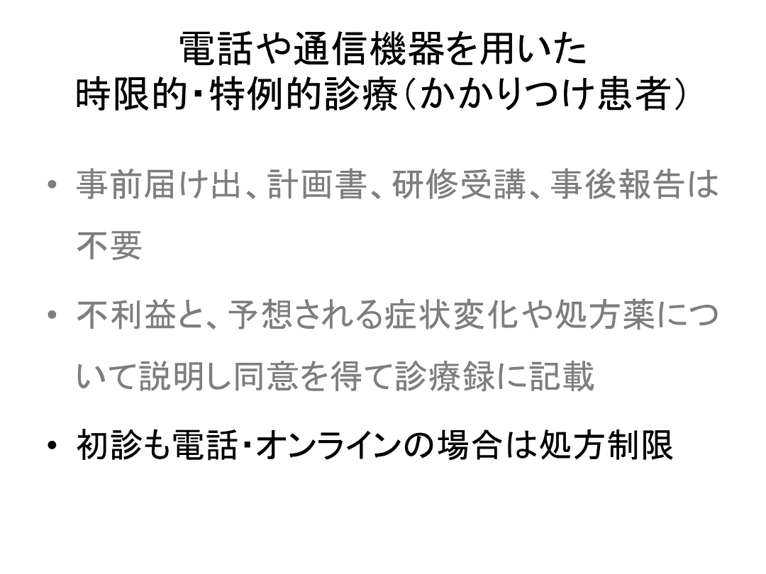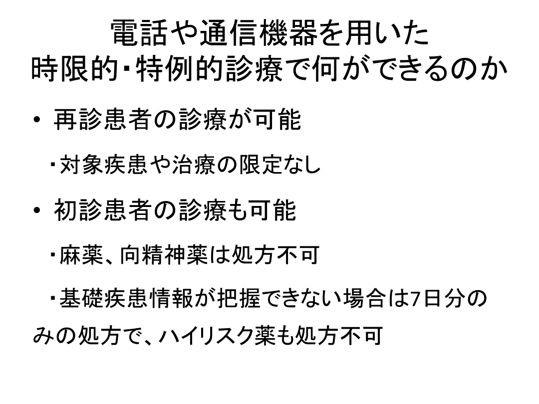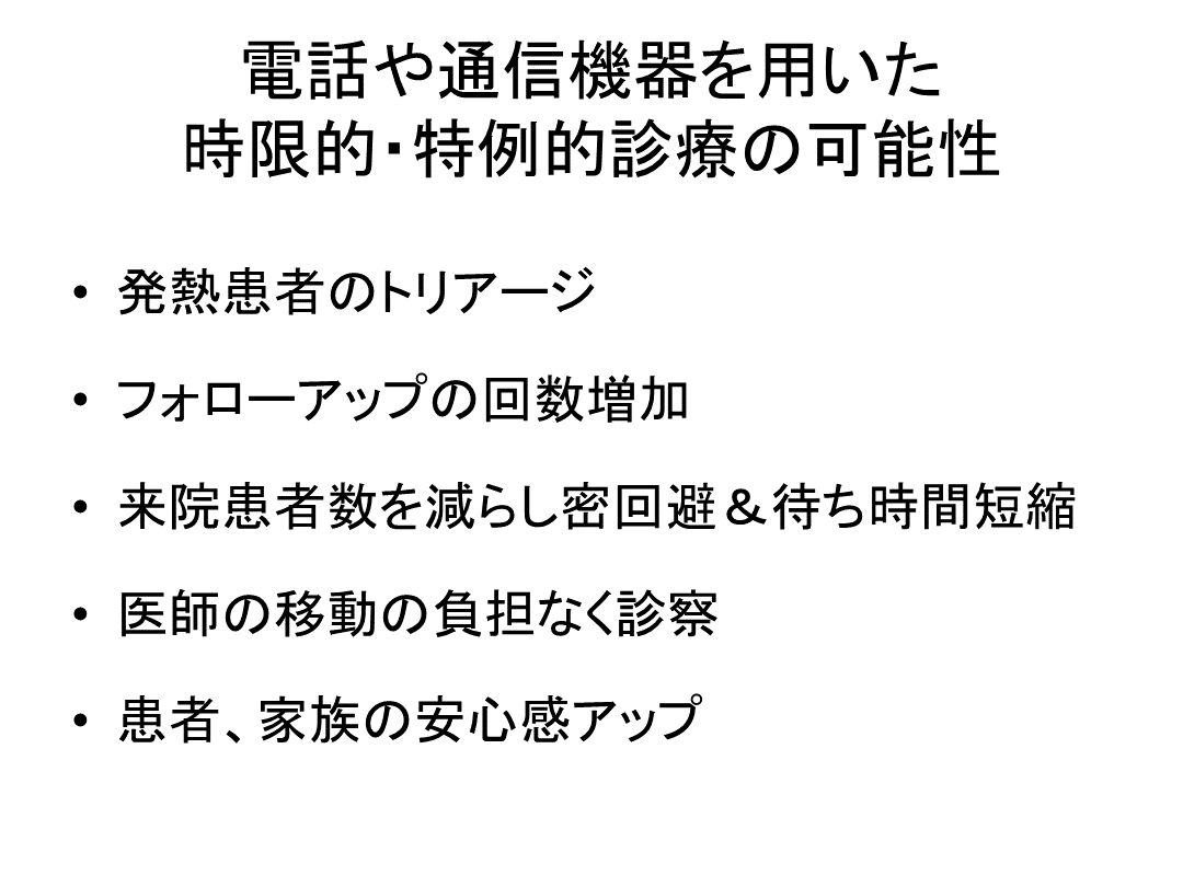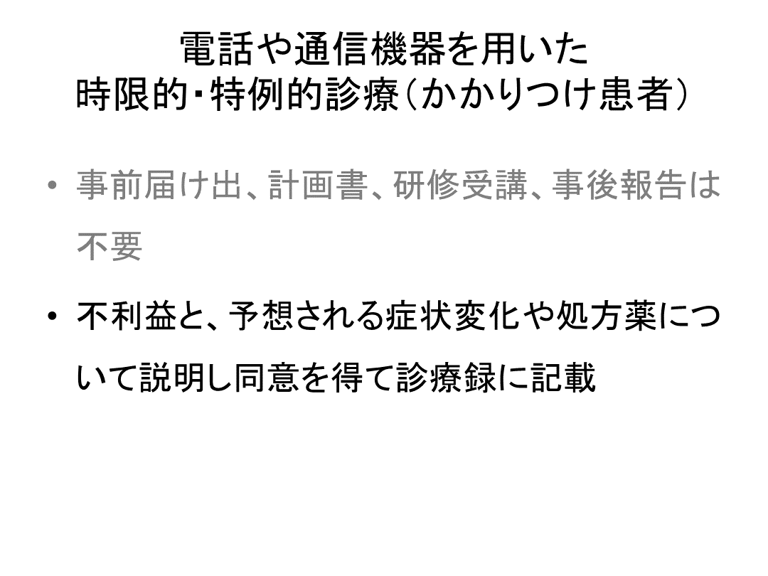 #24. 電話や通信機器を用いた時限的・特例的診療で何ができるのか 再診患者の診療が可能