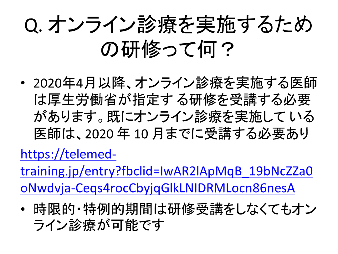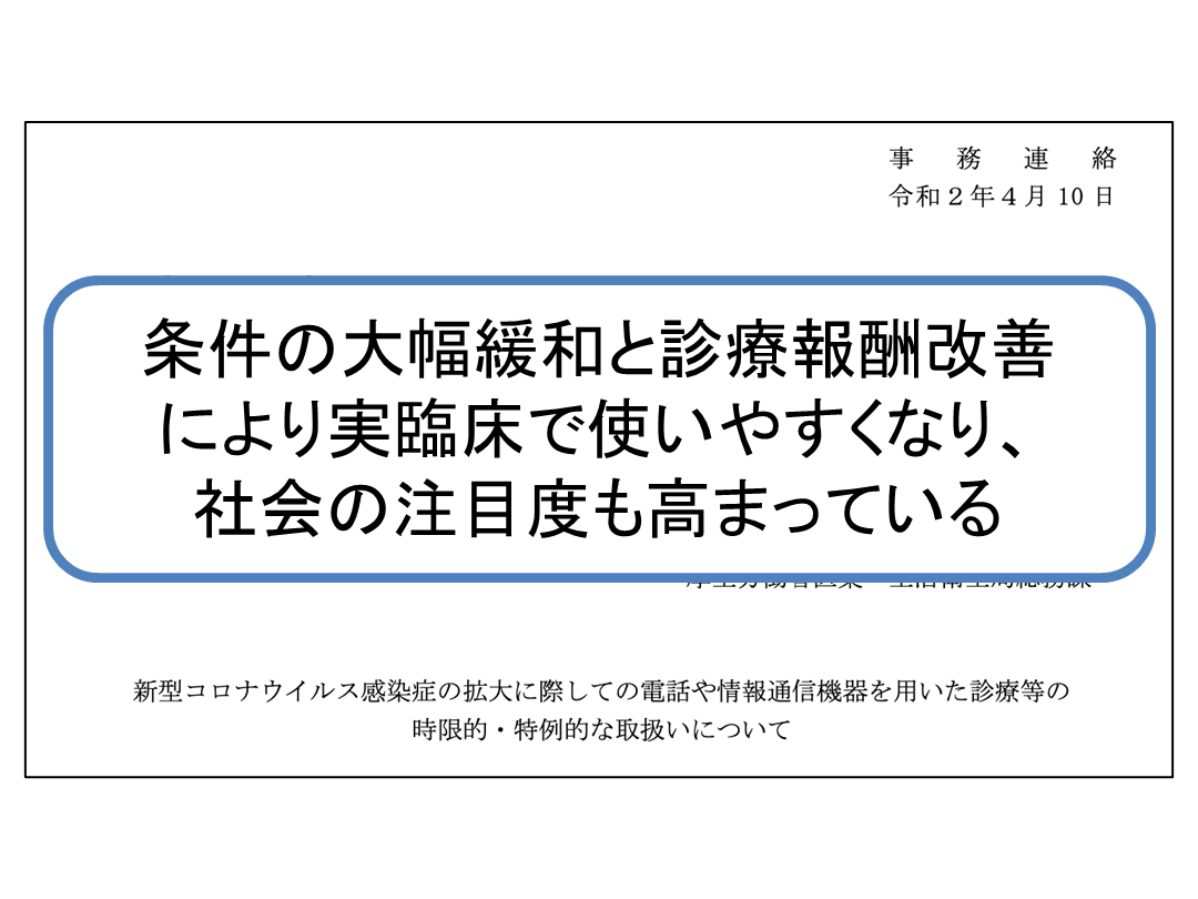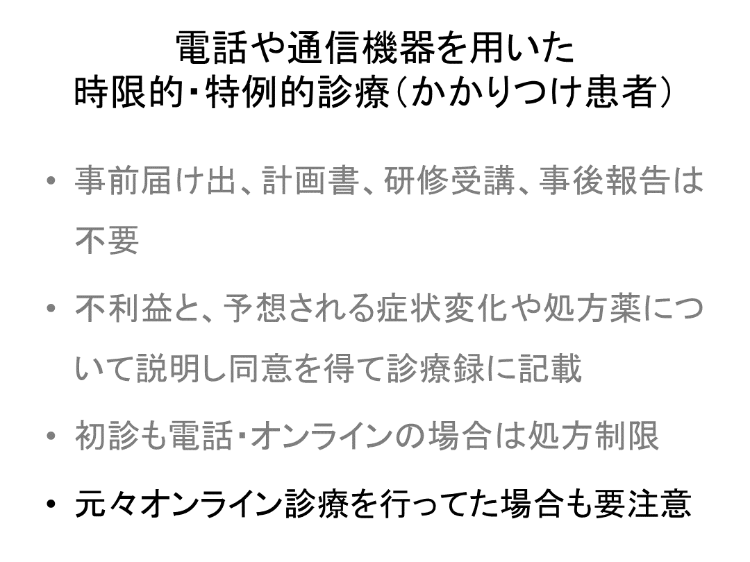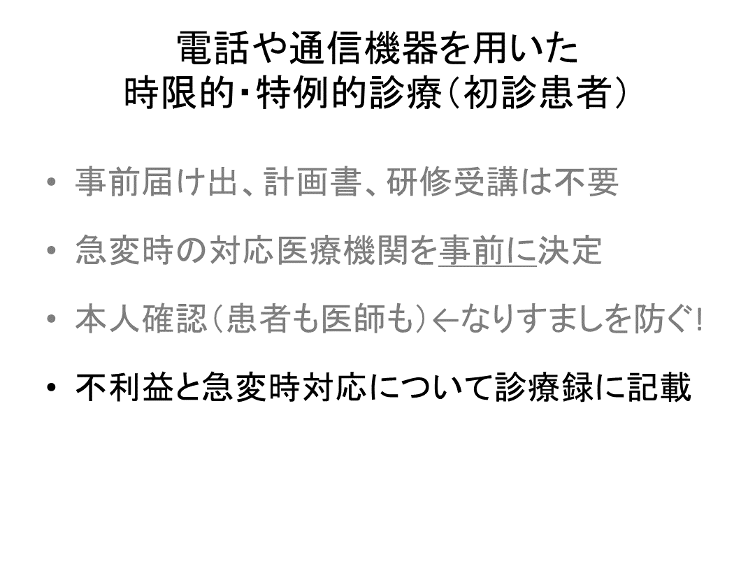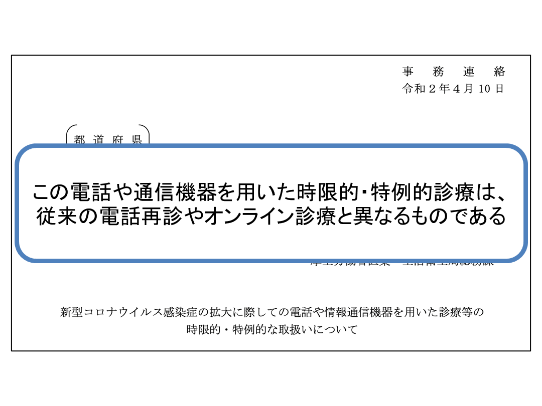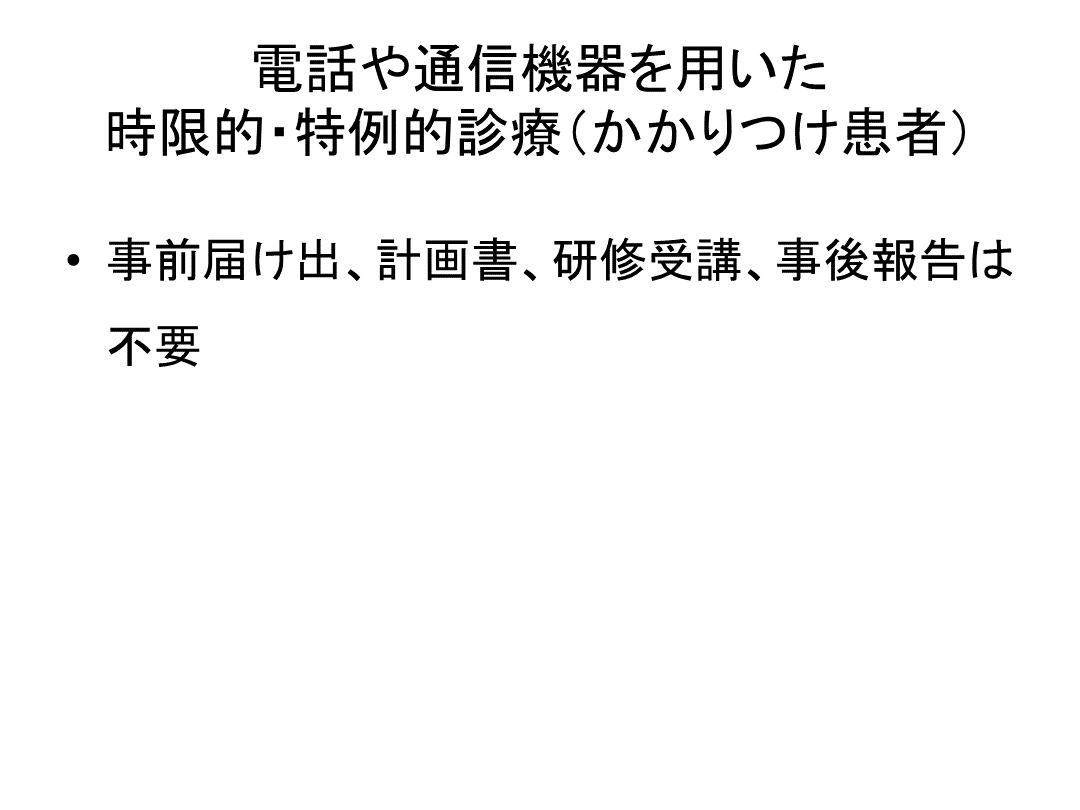 #24. 電話や通信機器を用いた時限的・特例的診療で何ができるのか 再診患者の診療が可能