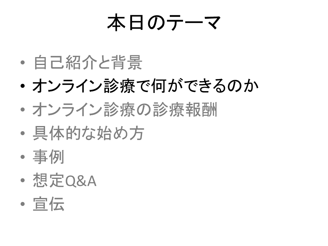 #16. オンライン診療で何ができるのか 再診患者の診療が可能