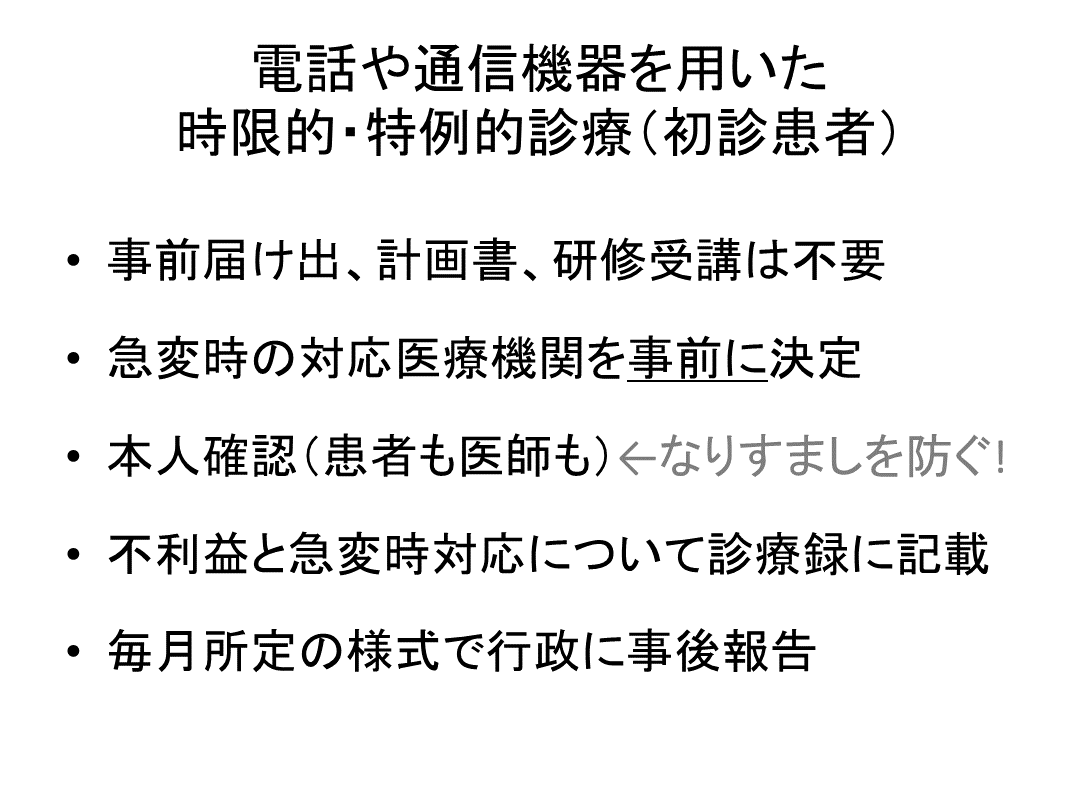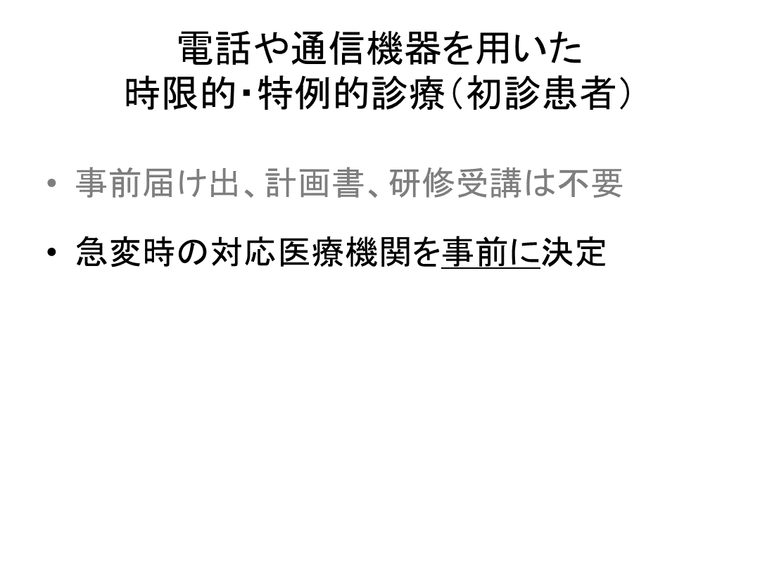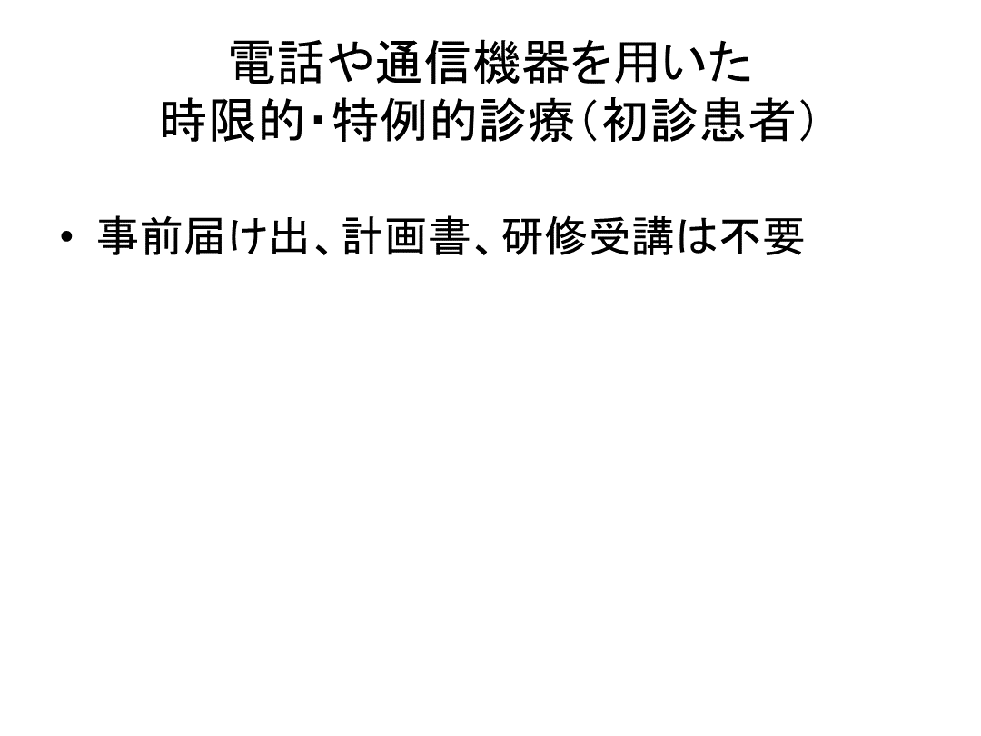 #31. 電話や通信機器を用いた時限的・特例的診療(初診患者) 事前届け出、計画書、研修受講は不要