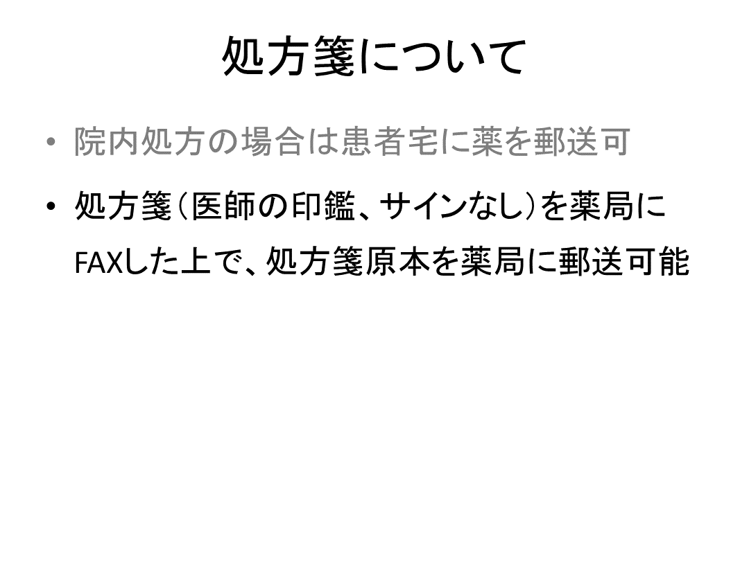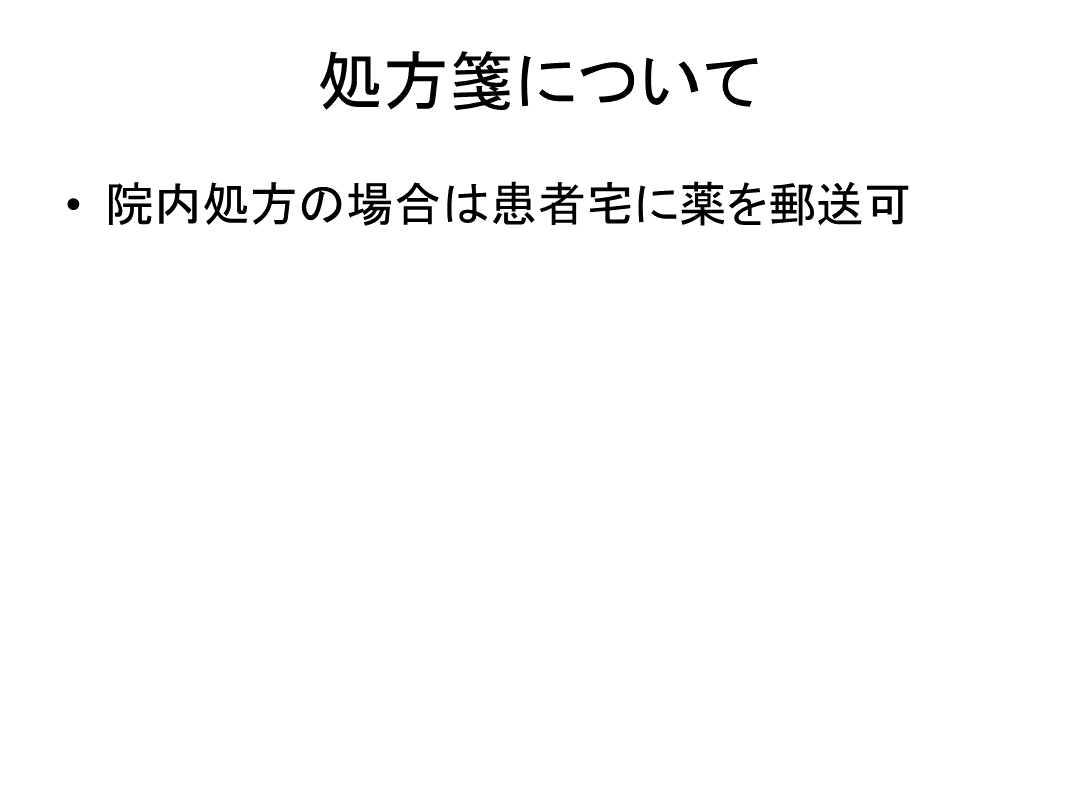 #40. 処方箋について 院内処方の場合は患者宅に薬を郵送可