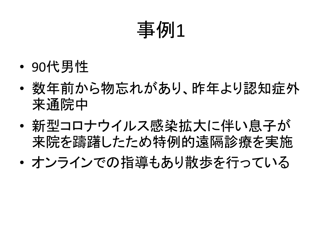 新型コロナウイルス感染拡大に伴い息子が来院を躊躇したため特例的遠隔診療を実施