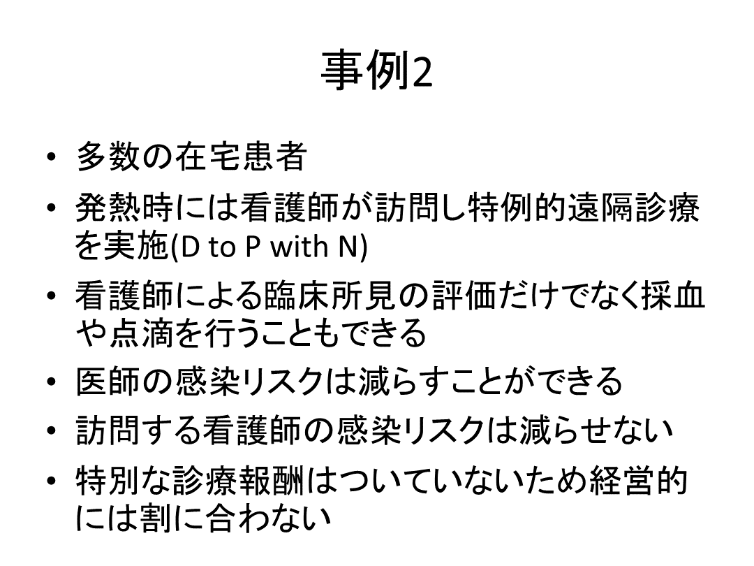 発熱時には看護師が訪問し特例的遠隔診療を実施(D to P with N)