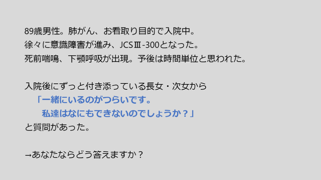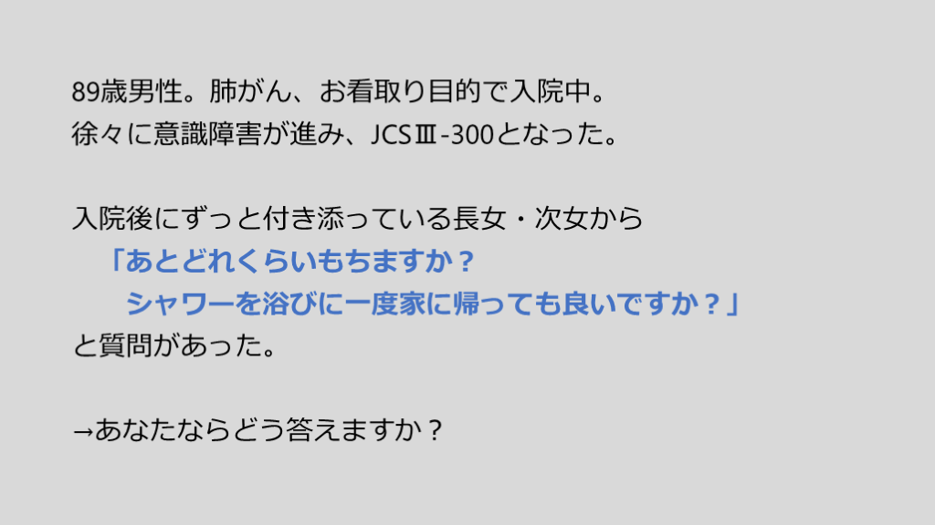 #2. 89歳男性。肺がん、お看取り目的で入院中。