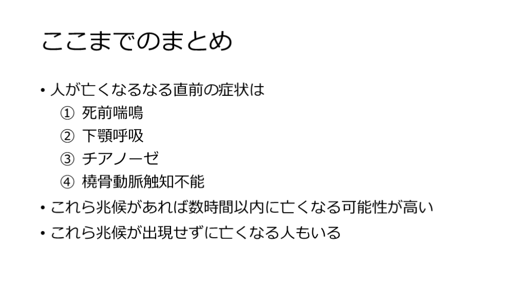 #12. ここまでのまとめ 人が亡くなるなる直前の症状は