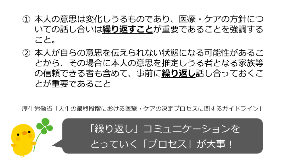 厚生労働省「人生の最終段階における医療・ケアの決定プロセスに関するガイドライン」 この「プロセス」って何なの?