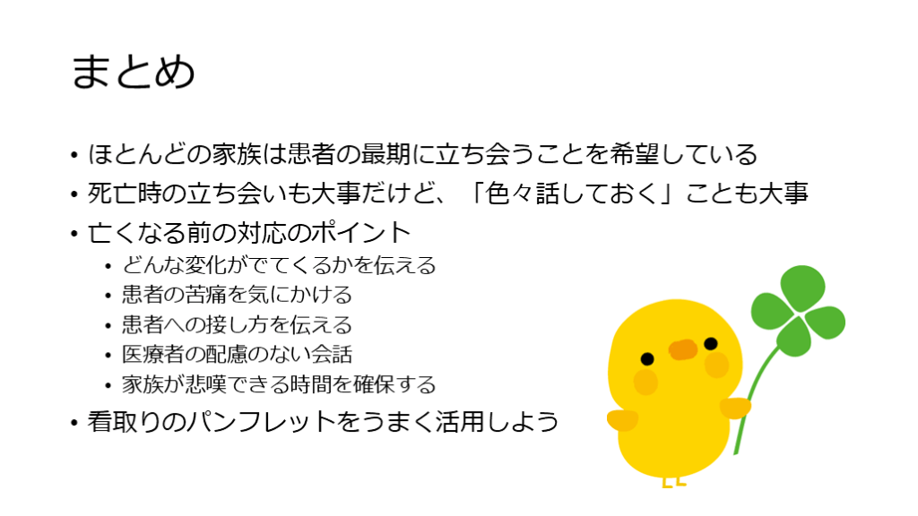 #47. まとめ ほとんどの家族は患者の最期に立ち会うことを希望している