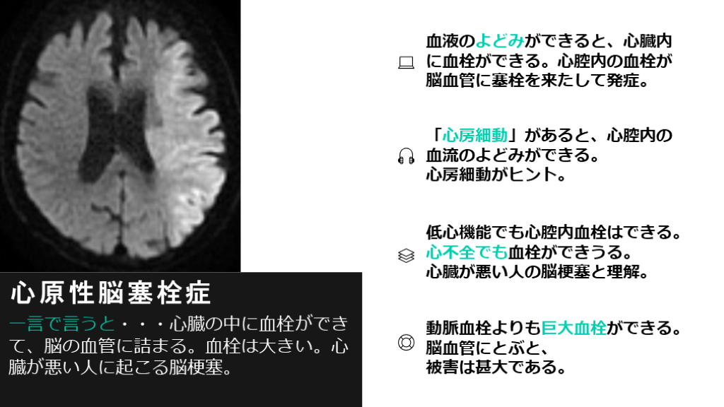 心臓が悪い人の脳梗塞と理解。