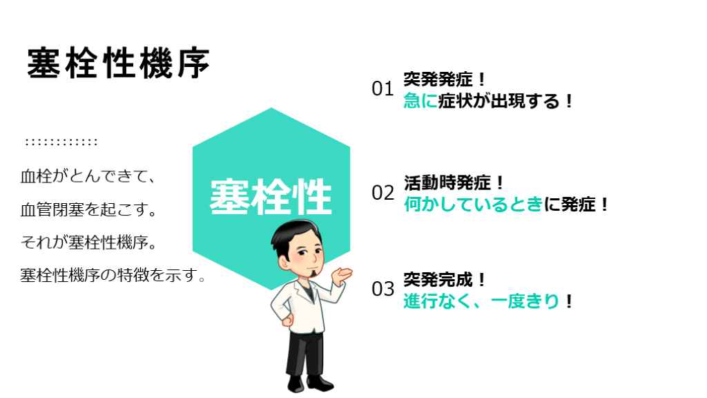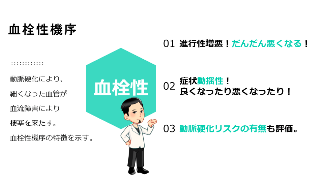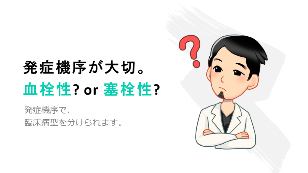 血栓性? or 塞栓性? 発症機序で、