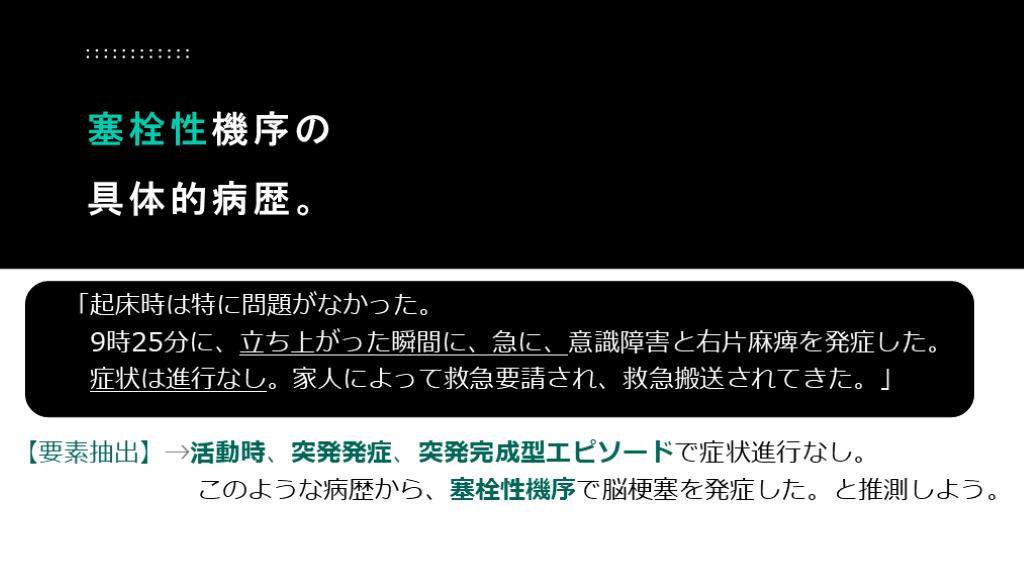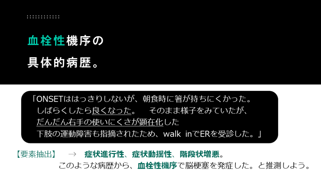 #46. 病歴聴取キーワードのまとめ 発症は突然? 症状は進行? 塞栓性? 血栓性? 皮質症状?