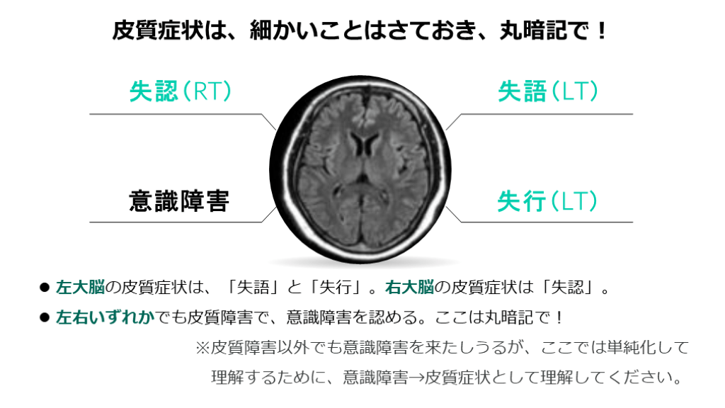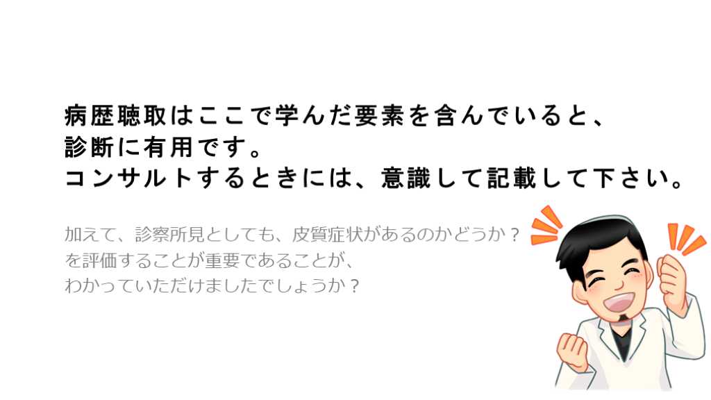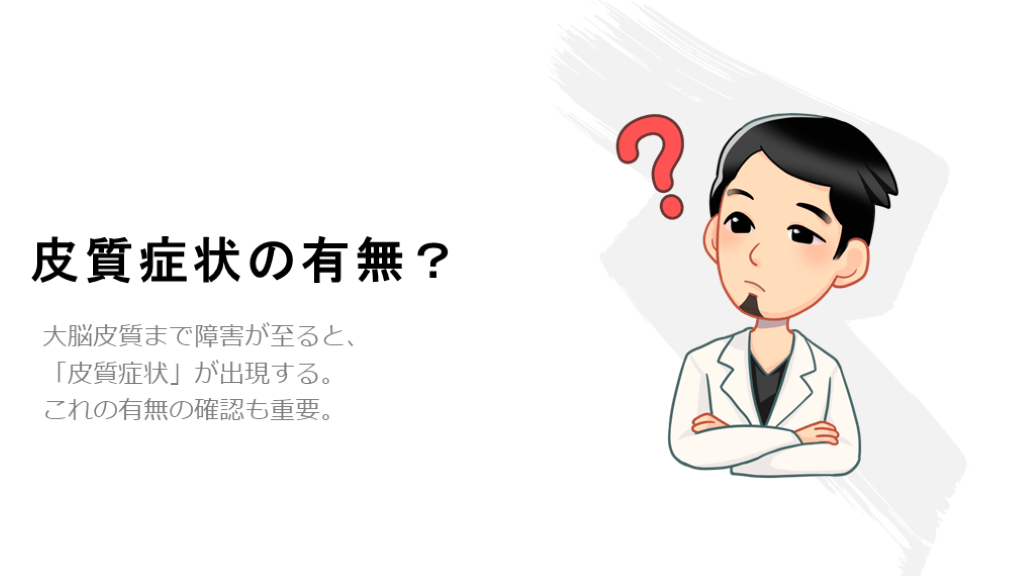 コンサルトするときには、意識して記載して下さい。 加えて、診察所見としても、皮質症状があるのかどうか?