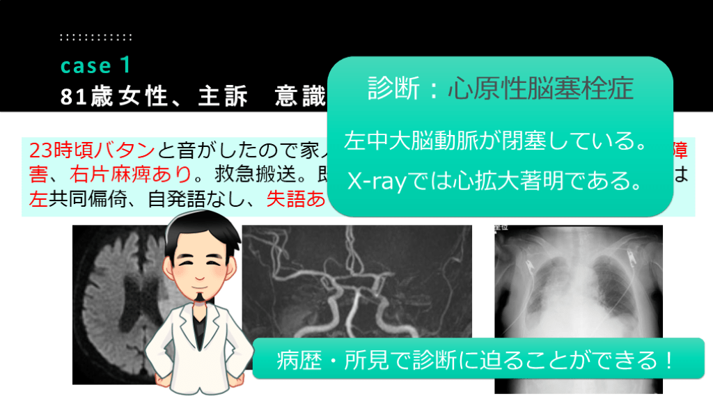81歳女性、主訴 意識障害 診断:心原性脳塞栓症
