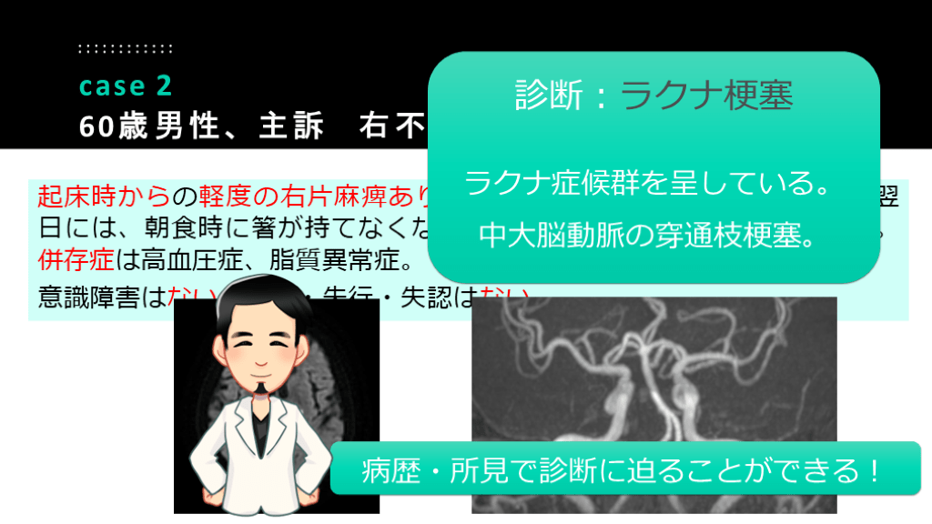 60歳男性、主訴 右不全片麻痺 診断:ラクナ梗塞